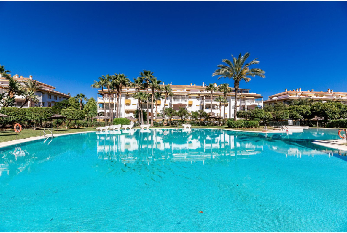 Discover the perfect blend of comfort, convenience, and Mediterranean charm in this bright 2-bedroom, 2-bathroom ground-floor apartment ideally located within walking distance of Puerto Banús and the beach. Set within a prestigious gated community with 24-hour security, this residence offers peace of mind and an exceptional lifestyle surrounded by 70,000 m² of lush landscaped gardens. Residents enjoy exclusive access to two stunning lagoon-style swimming pools, paddle tennis courts, children’s play area, and easy access to nearby golf courses.