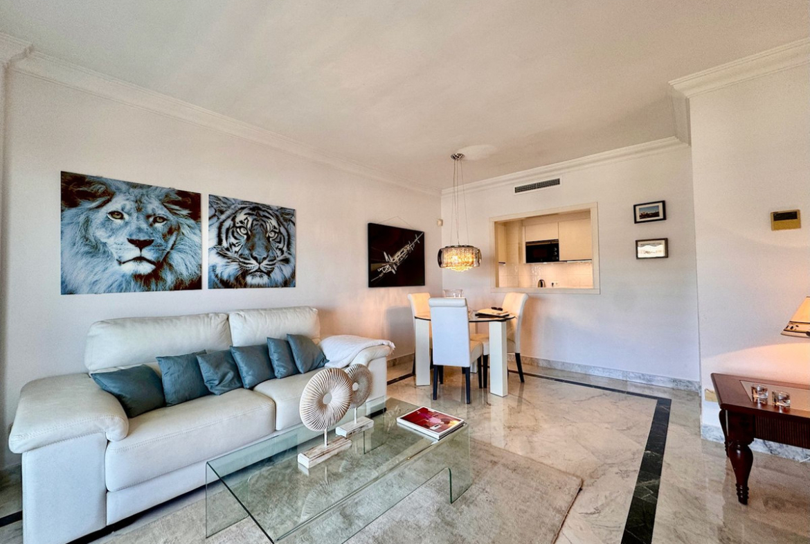 Location, Location, Location this apartment is located in the Prestigious Marina Banus building under two minutes walk from the Port of Puerto Banus and also the beach. This bright two bedroom and two bathroom apartment is located in an elevated position within the building giving one lots of afternoon sun and also views to the sea, the pool and buildings around Puerto Banus. This secure closed complex has its own pool and small gym. The property has marble flooring throughout and a good sized terrace allowing one to really enjoy the Andalucian climate. Unlike many properties around the port this apartment also has the added advantage of having its own private garage space.