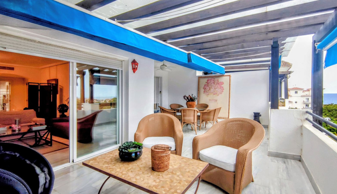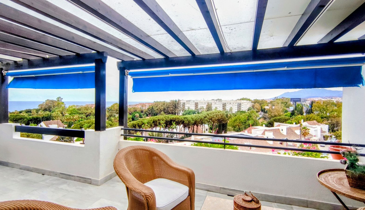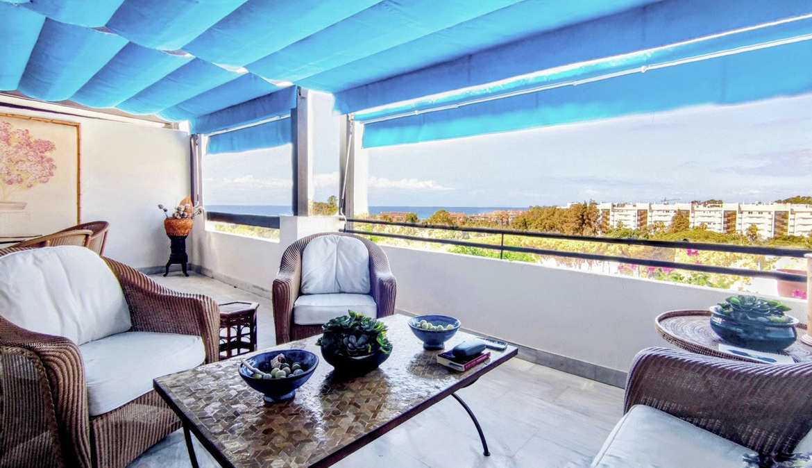 Just a two-minute walk from the beach, this apartment in Medina Garden, Puerto Banus, is the ideal place for a family vacation. This wonderful apartment can accommodate up to 5 people. It offers 2 bedrooms and 2 bathrooms, a well-equipped kitchen with a separate laundry room with a washing machine, a spacious living room, and a large terrace with dining and sitting areas with stunning sea and mountain views. It is not only the incredible views of Gibraltar and the African coast that give this apartment its privileged location, but the amazing views of the “Pueblos Blancos” at night, as their lights spread like a Bethlehem all over the mountains in the area. The southern Spanish climate makes this terrace the perfect place to sit with a glass of wine and some tapas in the evening, enjoy a cozy breakfast or brunch, or just relax with a good book with the sounds of the sea and seagulls in the background. The apartment has two elevators and a convenient underground parking space with direct access to the apartment. It also has central air conditioning.
