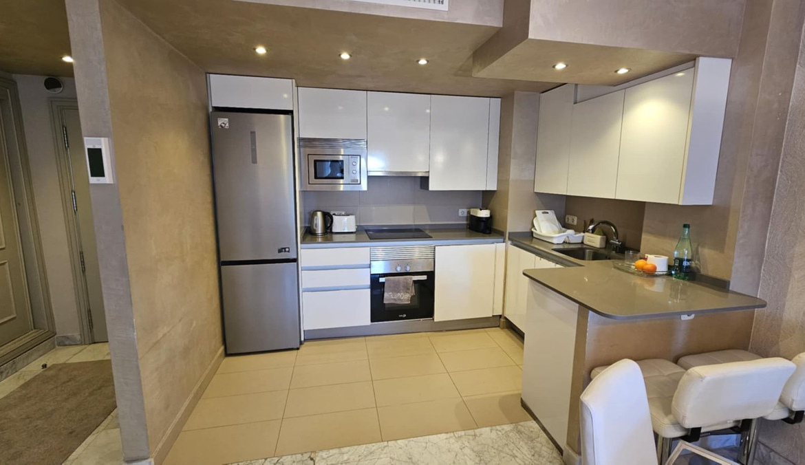 Totally renovated 2 bedroom – 2 bathroom apartment in the heart of Puerto Banus for sale. Perfect location, next to the beach and opposite the El Corte Inglés.
