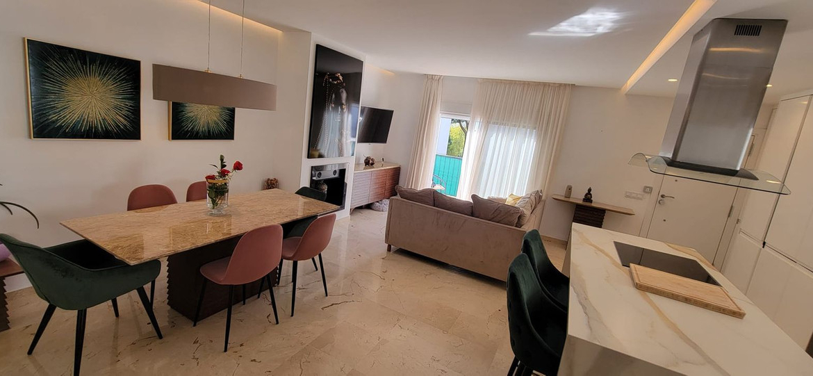 This wonderful and beautifully renovated 2 Bed apartment is located in the exclusive Aloha Golf complex, just 5 minutes from the prestigious and popular Puerto Banús.