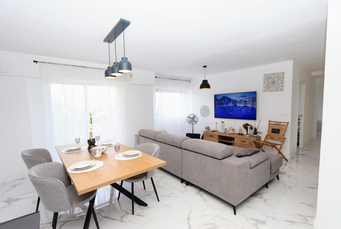 Take a look at this beautiful fully renovated Beachside 1st Floor Apartment located in the popular Punta Prima area. The apartment consists of two bedrooms, 2 bathrooms, living/dining area and a fully fitted kitchen. The property benefits from a private terrace with sea views, air conditioning, parking and sold furnished. The complex offers a communal swimming pool area and unnumbered parking spaces.