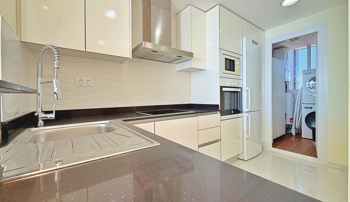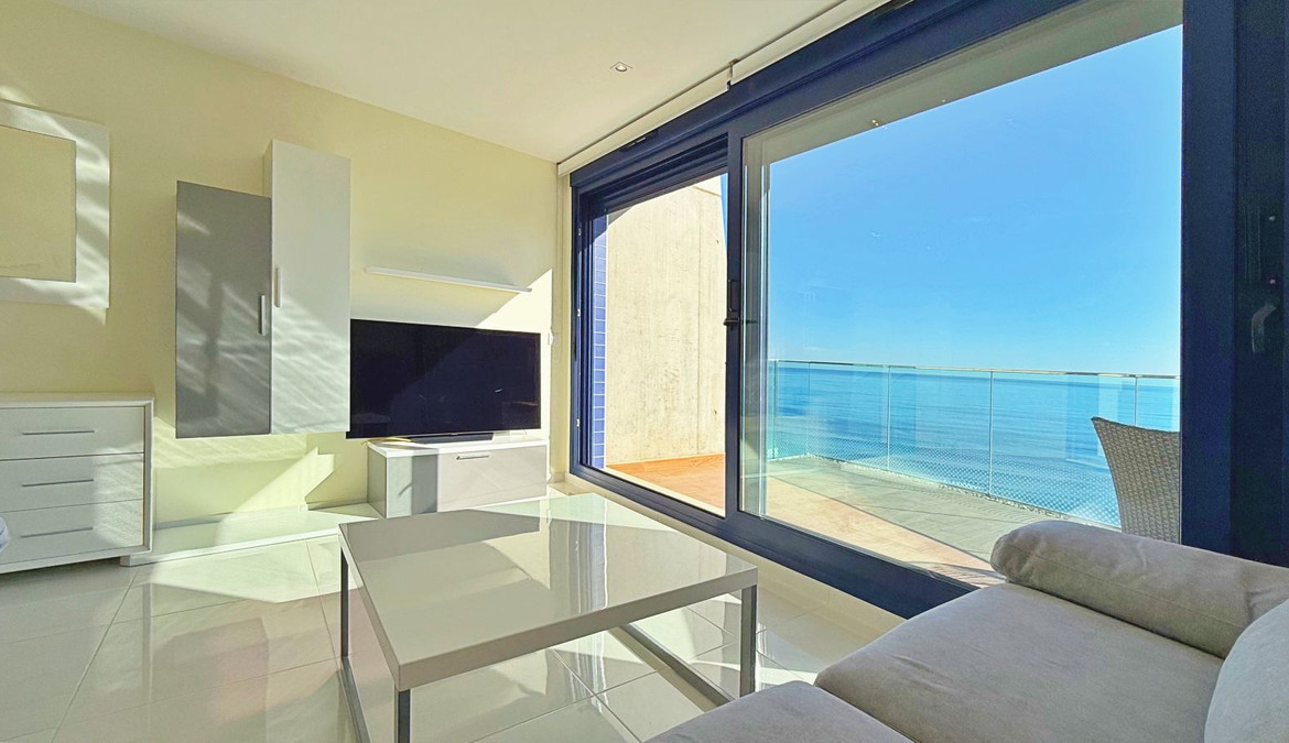 The property features 2 bedrooms and 2 bathrooms, designed in a modern and functional layout to ensure maximum comfort. From the bright living room, you access a charming 12 m² terrace, perfect for enjoying the sunrise and the sea breeze. The highlight of this penthouse is its spectacular private 83 m² solarium, equipped with a jacuzzi and relaxation areas—an authentic private oasis with endless sea views, ideal for enjoying the Mediterranean climate all year round.