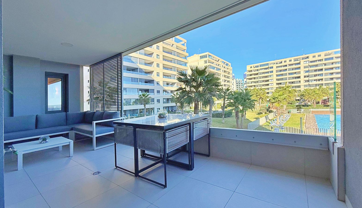 This elegant 2-bedroom, 2-bathroom apartment is located frontline, offering stunning open sea views. Its modern and bright design creates a cozy and relaxing atmosphere, ideal both for year-round living and for enjoying holiday stays.