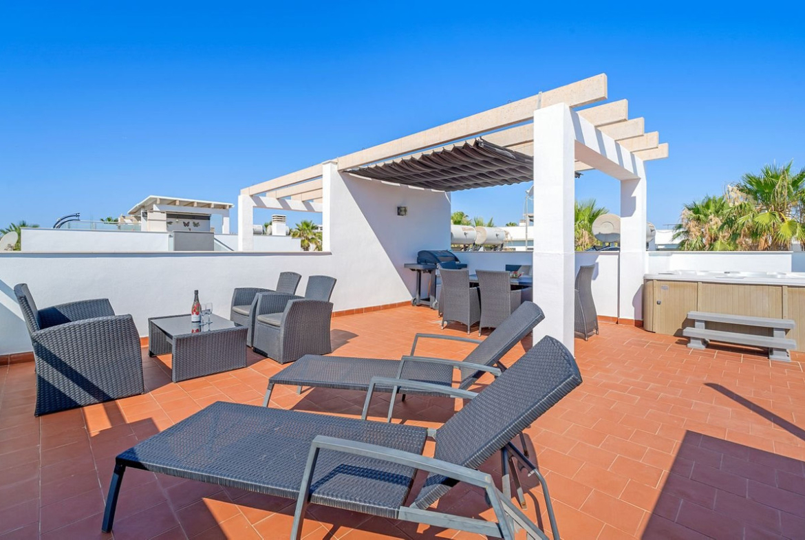 Welcome to this beautiful penthouse apartment, situated in a gated and well-maintained complex in the heart of Punta Prima – one of the most sought-after areas of Torrevieja.