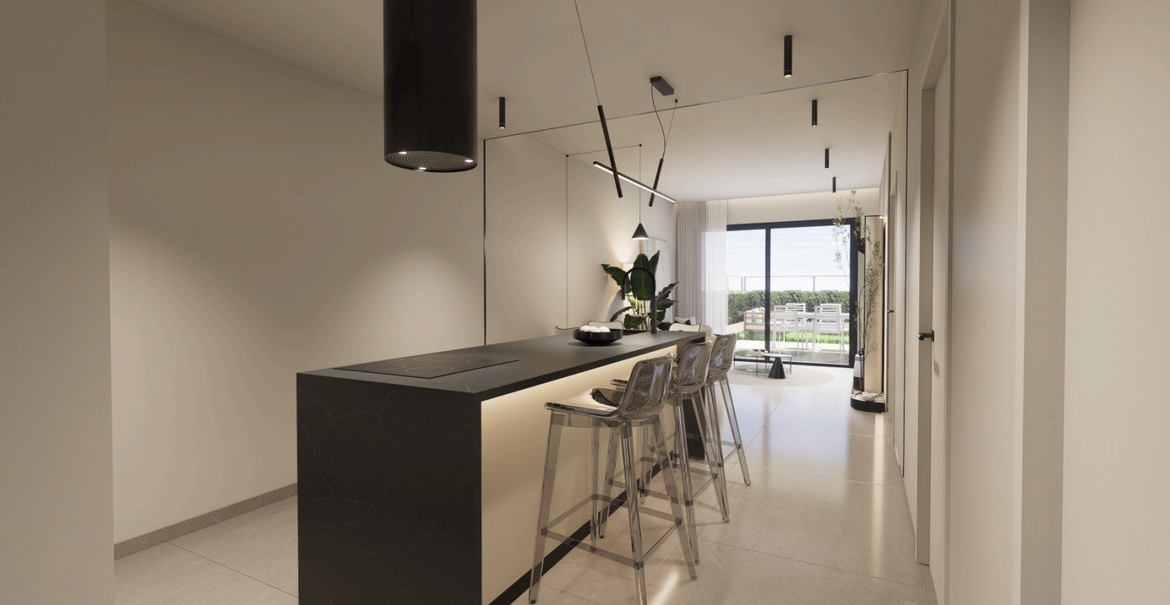 Discover our exclusive 70-square-meter homes, designed to offer maximum comfort and elegance. Each residence features two bedrooms, one of them a suite with a private bathroom, plus a second modern bathroom for added convenience. The heart of the home is a spacious living room seamlessly integrated with a state-of-the-art kitchen, creating an open and inviting atmosphere.