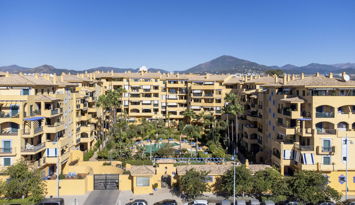 The property is located beachside San Pedro de Alcantara and set within one of the most sought-after areas of the Costa Del Sol. New to the market, we are offering this spacious 2 bedroom apartment for sale which sits on the third floor of the well secured gated urbanisation of Los Almendros, directly opposite Laude International School. A short walk takes you to the centre of the lively Spanish town of San Pedro which is awash with bars, restaurants, shops and supermarkets. The lovely beach promenade is only a short stroll and stretches all the way to the famous Puerto Banus, with an abundance of bars, restaurants and chiringuitos along the way.
