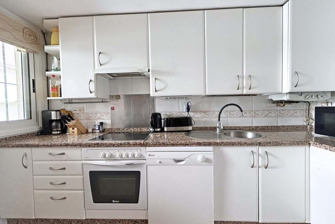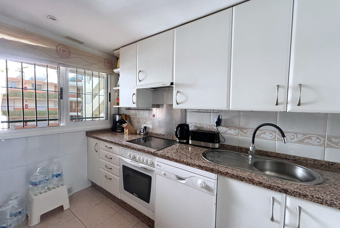 This apartment of over 90 m² offers a comfortable and bright layout, ideal for everyday living or as a second home on the Costa del Sol. It has two bedrooms and two full bathrooms, the master bedroom being en suite and with direct access to the terrace. The kitchen is separate and fully equipped, and the spacious living room has a dining area and access to a pleasant covered terrace of over 18 m² with unobstructed views and west-facing. A parking space is included.