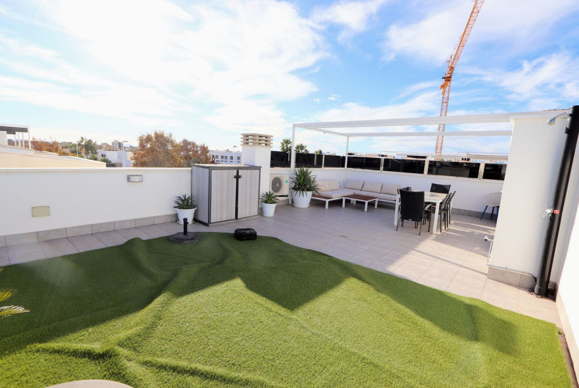 Discover this beautiful Penthouse Apartment located in the heart of San Pedro del Pinatar. This Penthouse Apartment consists of 2 bedrooms and 2 bathrooms, living/dining area and a fully fitted kitchen. The property benefits from a front terrace overlooking the communal swimming pool, a spacious solarium with outside kitchen, air conditioning, parking space and storage room