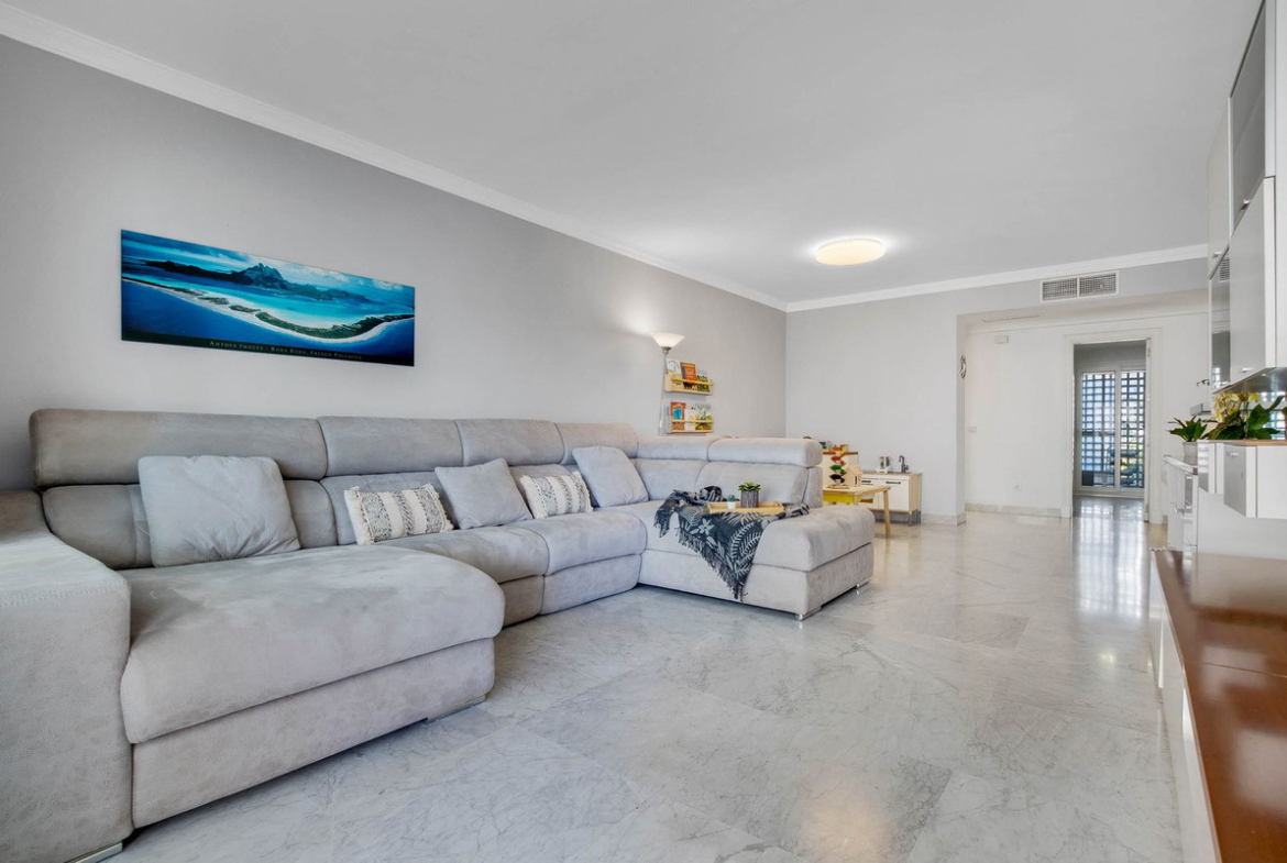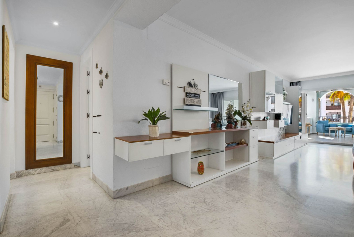 This property has been recently renovated with high-quality materials and is ready to move into. It boasts marble floors, centralised hot and cold air conditioning, high ceilings, and solid interior walls, in a building constructed in 2002.
