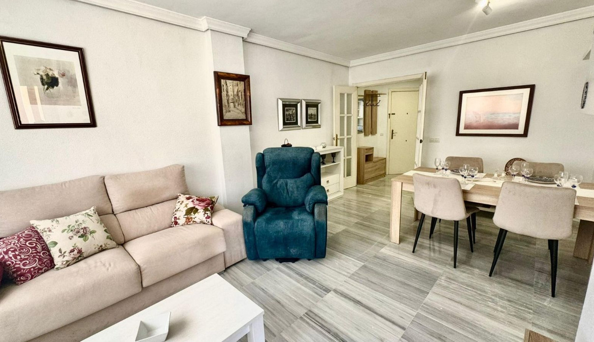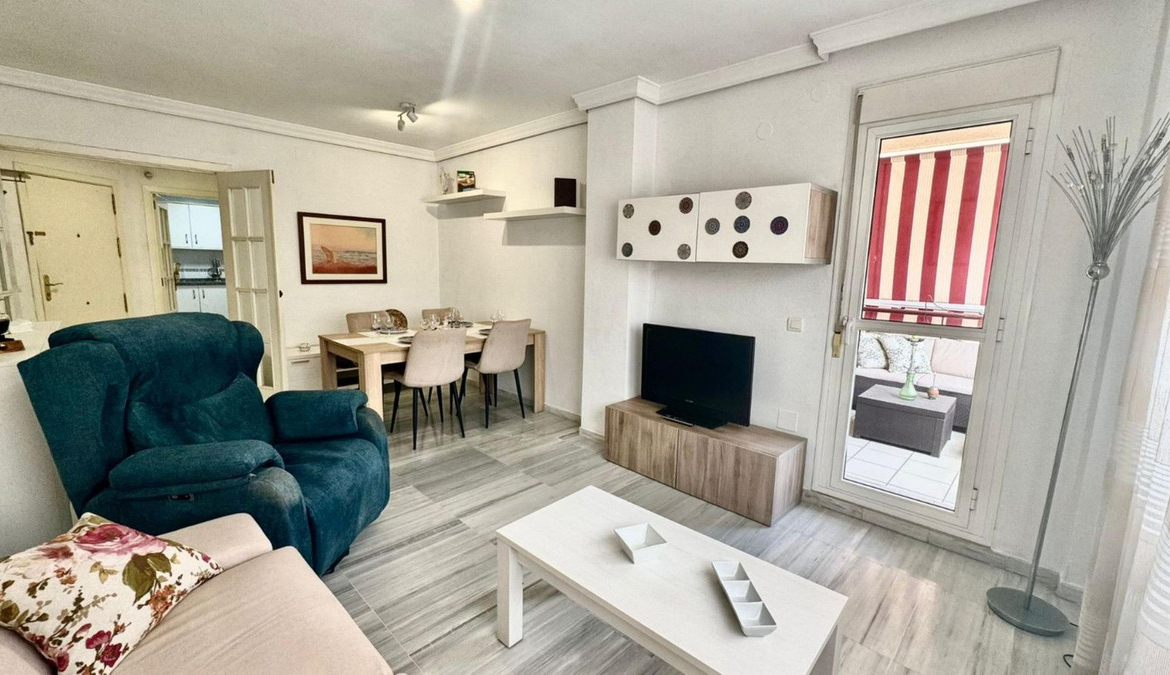 This well-appointed 2-bedroom apartment is located in the heart of Torremolinos, offering a comfortable and convenient lifestyle. The apartment features a spacious living area with access to a private terrace, perfect for relaxing and enjoying the views. Both bedrooms are equipped with fitted wardrobes, providing ample storage space.