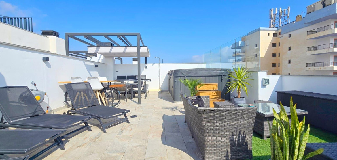 This penthouse is a unique opportunity whether you are looking for a home to live in all year round, a second residence by the sea, or an investment for holiday rentals, as there are no restrictions on short-term lets within the community.