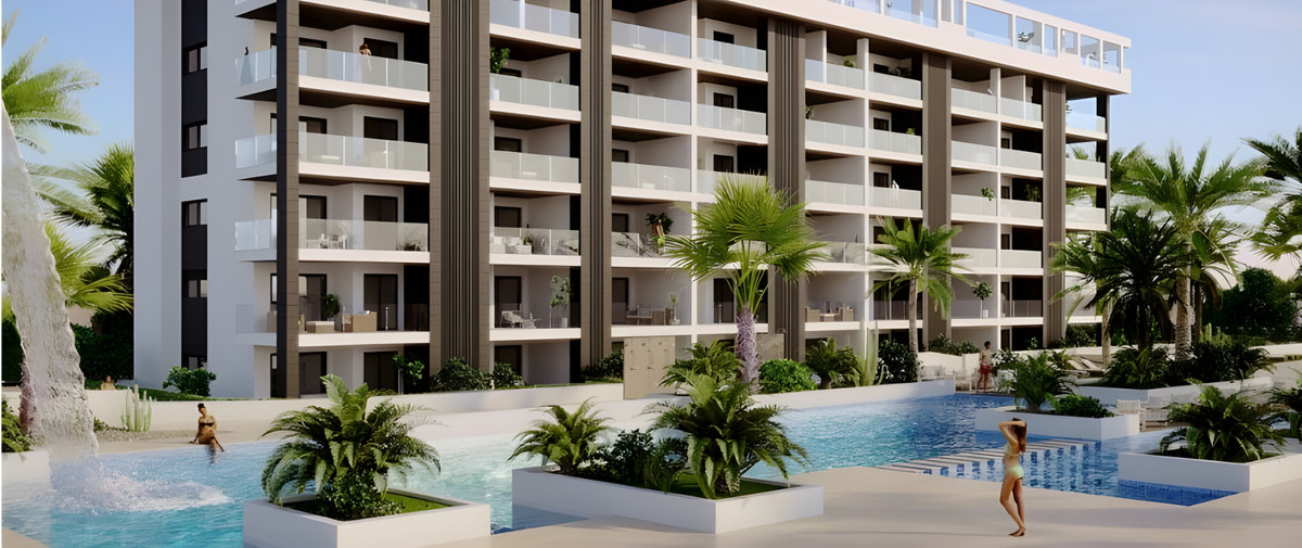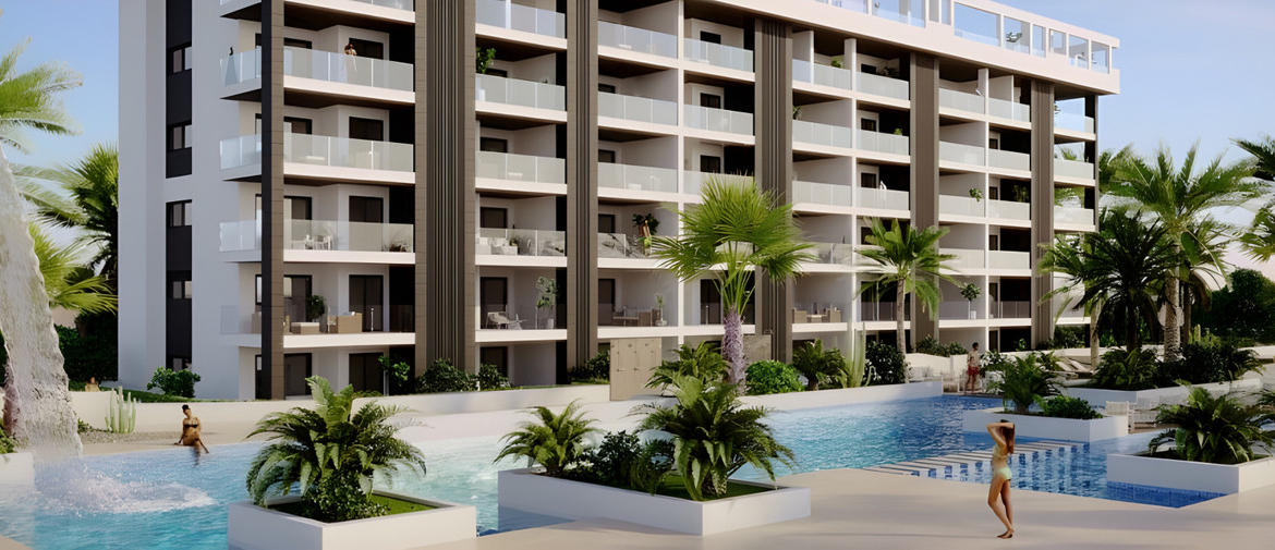 The development stands out for its ample landscaped areas and complete installations, from which you will be able to enjoy the sun and the sea views; the communal areas include cascading pools and landscaped gardens.