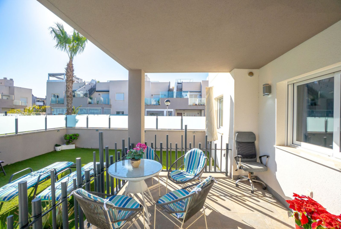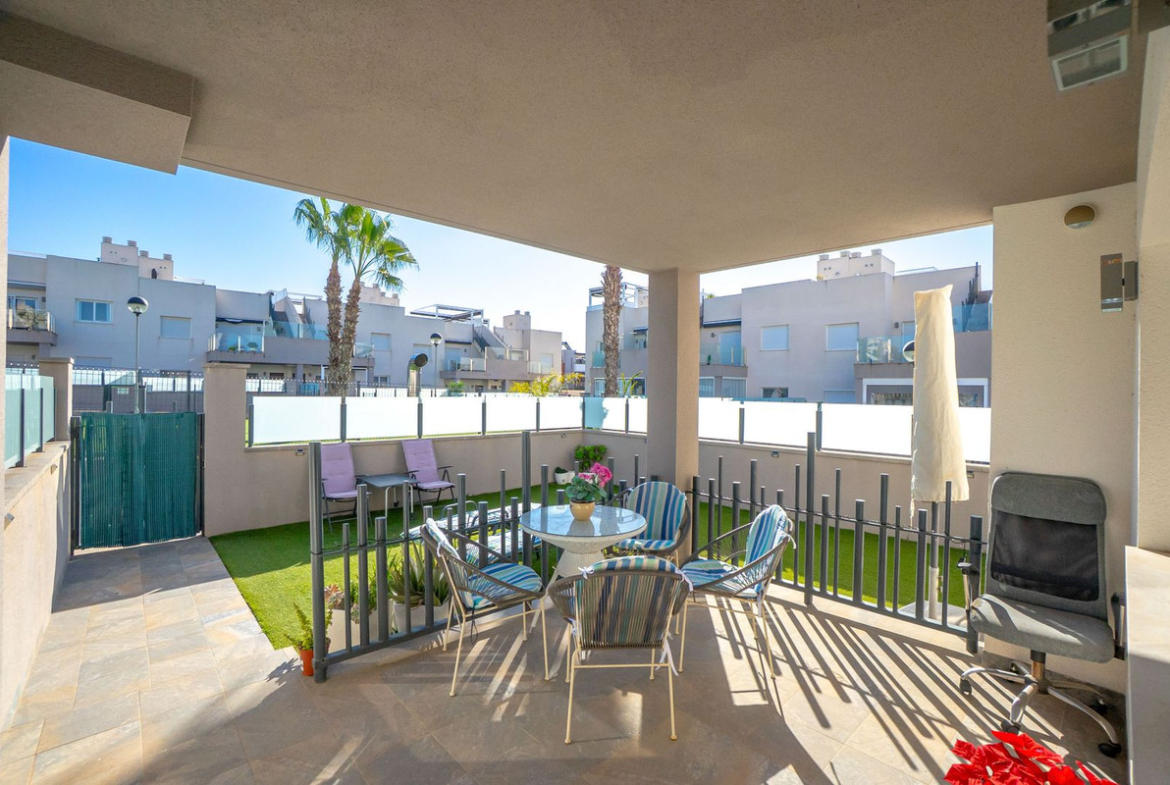Welcome to this beautiful and impeccably maintained apartment, ideally located in the highly sought-after Solpark area of Aguas Nuevas (Sector 25). The property offers two bedrooms and two bathrooms, with a well-designed layout and charming outdoor spaces on both sides of the home, allowing you to enjoy the sun throughout the day.