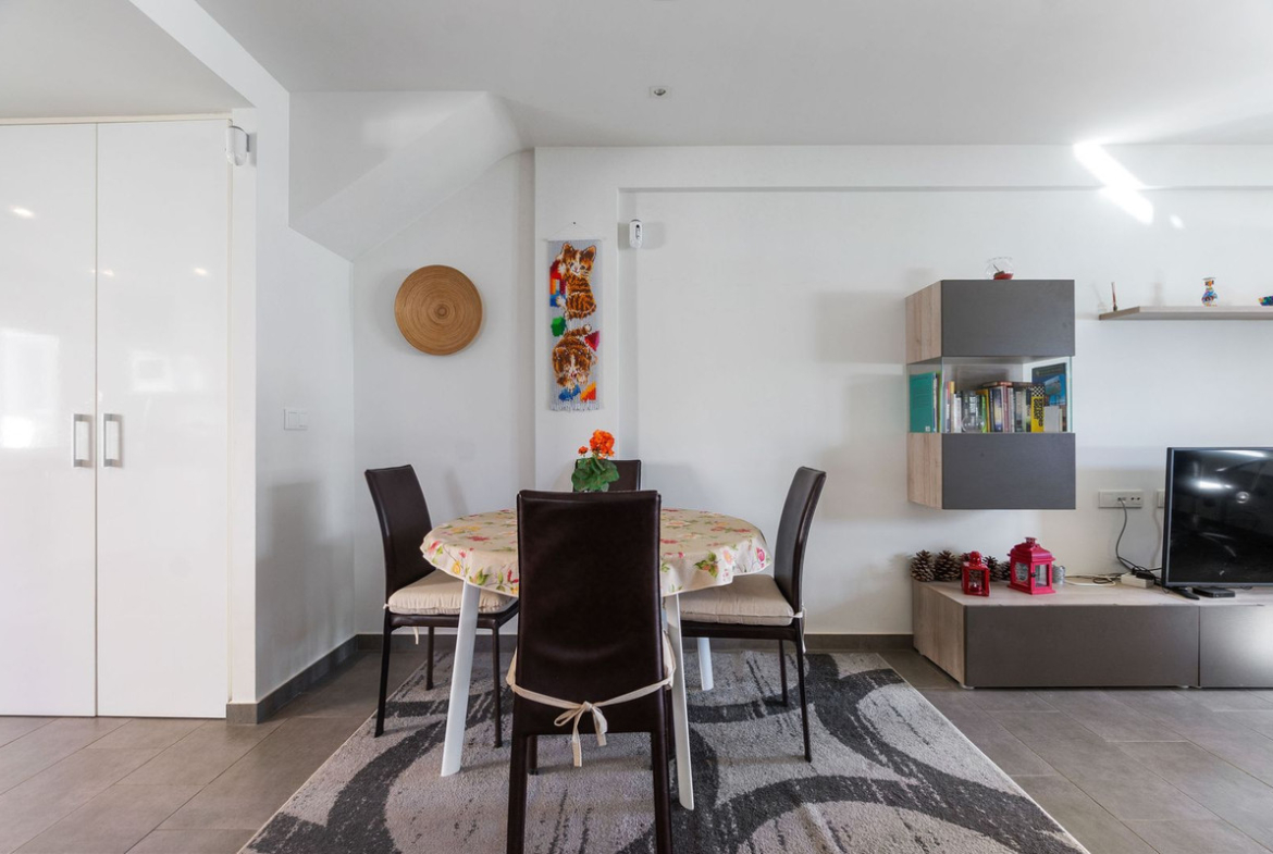 The apartment is sold fully furnished and equipped, ready for immediate occupation. A private parking space is included in the basement.