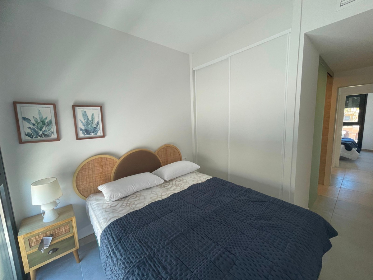 This South Facing, Two Bedroom, Top Floor Corner Apartment is located within a 10 minute walk of a main chain supermarket, JYSK furniture store, and a selection of café bars and restaurants. Villamartin Golf Course is just a 5 minute drive away, while the popular La Zenia Boulevard shopping centre and the beautiful beaches of the Orihuela Costa are only 10 minutes by car. Built in 2023, this stylish first-floor apartment boasts a modern design and bright interior. The open-plan living area features double sliding doors leading out to a partly covered terrace with views over the beautifully laid out communal pool area. The spacious fitted kitchen offers ample work and storage space along with a breakfast bar. There are two double bedrooms, both with built-in wardrobes, and two sleek shower rooms with under floor heating—one of which is en suite. A standout feature is the impressive 60m² private solarium, accessed via the terrace, offering ample space for sunbathing, entertaining, or enjoying the views. Additional benefits include air conditioning, off-road parking, and access to a stunning communal pool—all set in the heart of Costa Blanca South.