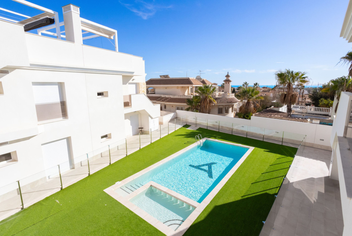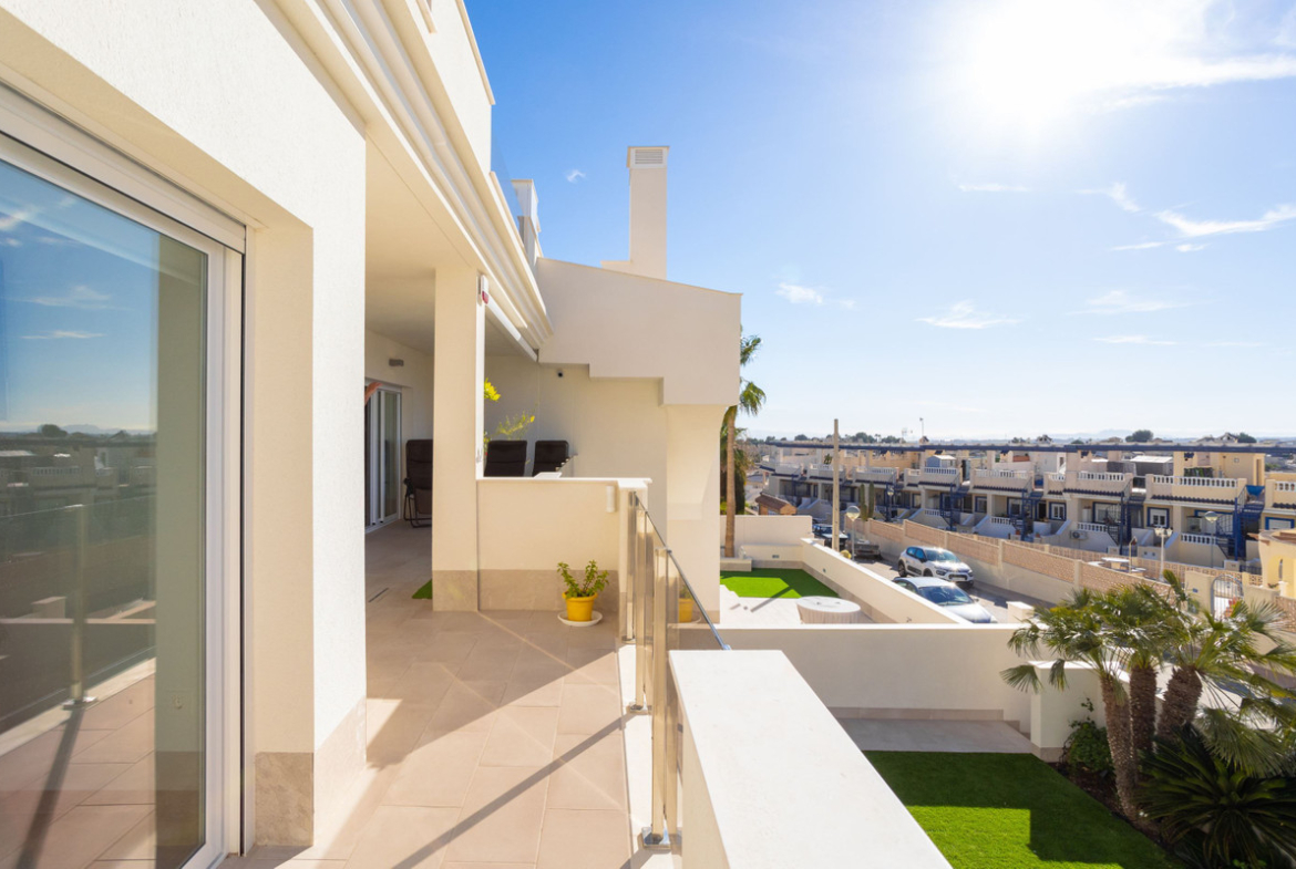 Modern apartment with roof terrace – close to golf, shopping and sea Welcome to this stylish and modern apartment with a sought-after location in popular Villamartin, perfect for those looking for a home with both comfort and proximity to the best the Costa Blanca has to offer. Here you live within walking distance of Villamartin Plaza and a short drive to golf courses, La Zenia Boulevard and the Mediterranean beaches.