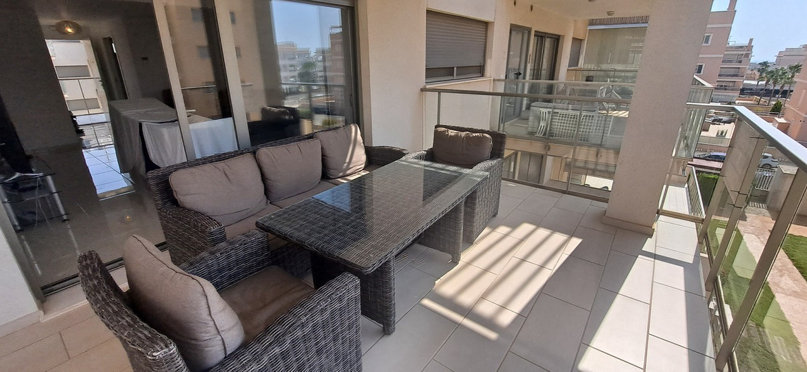Modern 2-Bedroom Apartment in Los DolsesDiscover this beautifully presented second-floor apartment in the sought-after area of Los Dolses, offering the perfect combination of comfort, convenience, and Mediterranean lifestyle.This key-ready home boasts 2 spacious bedrooms and 2 bathrooms, a bright open-plan living and dining area, and a modern fitted kitchen. The apartment is sold fully furnished and benefits from air conditioning, lift access, and a private terrace ideal for relaxing or entertaining.Additional features include a private parking space with garage, a handy storage room, and access to a lovely communal swimming pool set within well-maintained gardens.Located in a prime spot, this property is surrounded by top-class golf courses such as Villamartin, Las Ramblas, and Campoamor, and is just a short drive from the stunning beaches of Orihuela Costa. Both Alicante and Murcia airports are easily accessible, making it perfect as a holiday home, rental investment, or year-round residence.Don’t miss this fantastic opportunity to own an apartment in one of the Costa Blanca’s most desirable locations