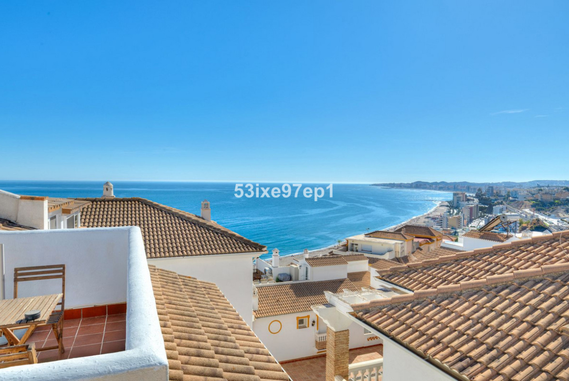 Another flight of stairs leads to the roof terrace facing west with a magical view down to the entire coastline of Carvajal/Torreblanca/Los Boliches and Fuengirola and towards the mountains to the northwest.