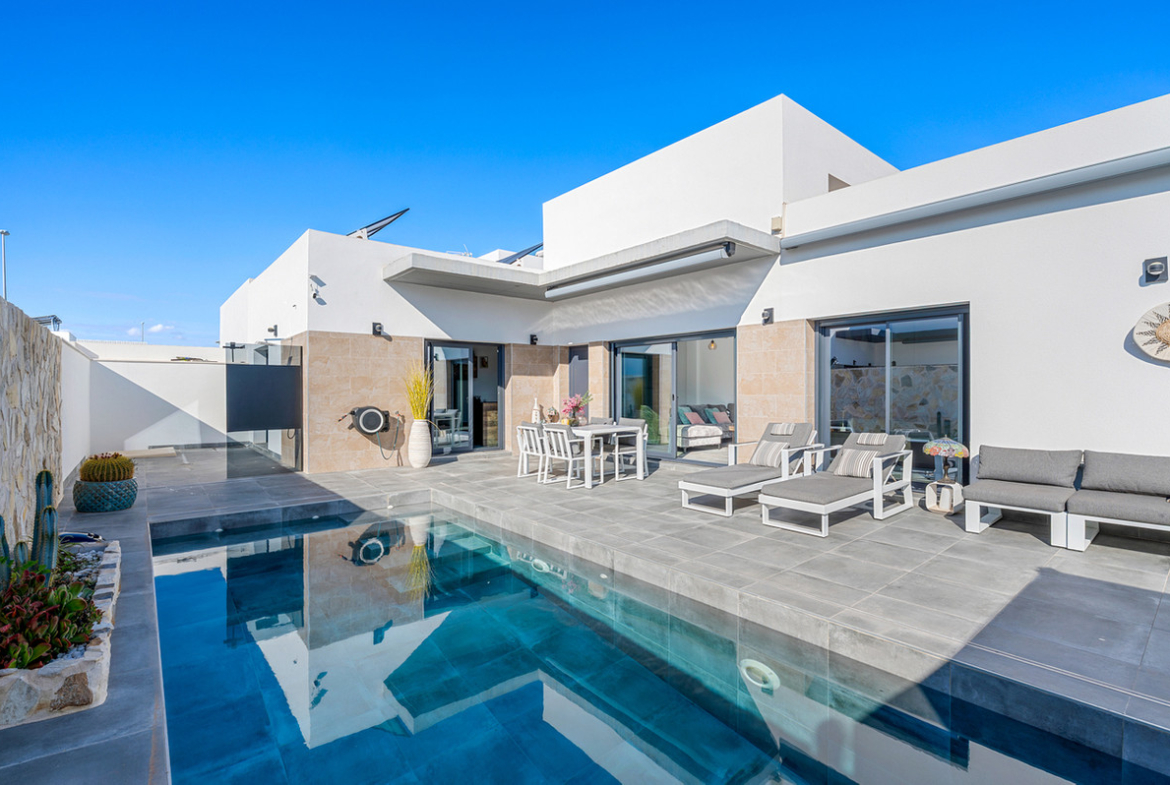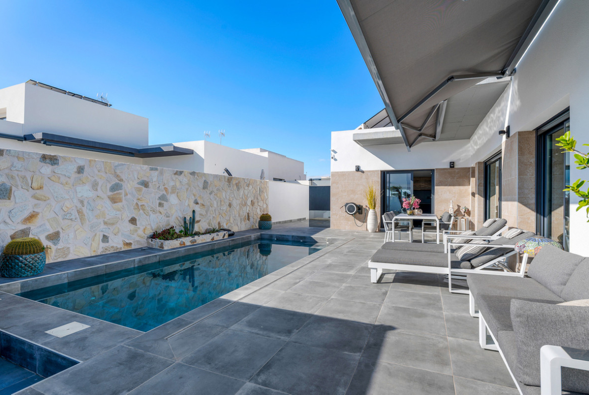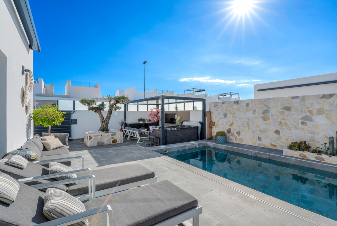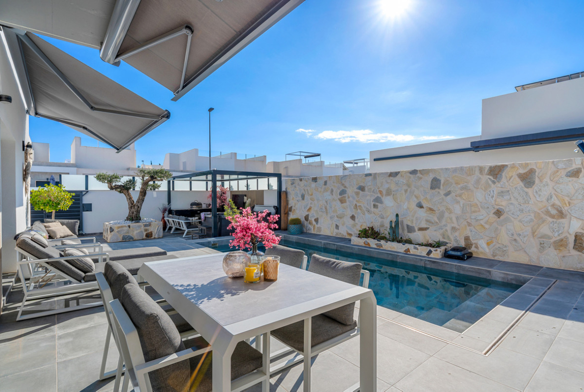 Beautiful semi-detached villa with 2 bedrooms, private swimming pool and a large underbuilt in Daya Nueva, Alicante close to the village with several bars and restaurants.