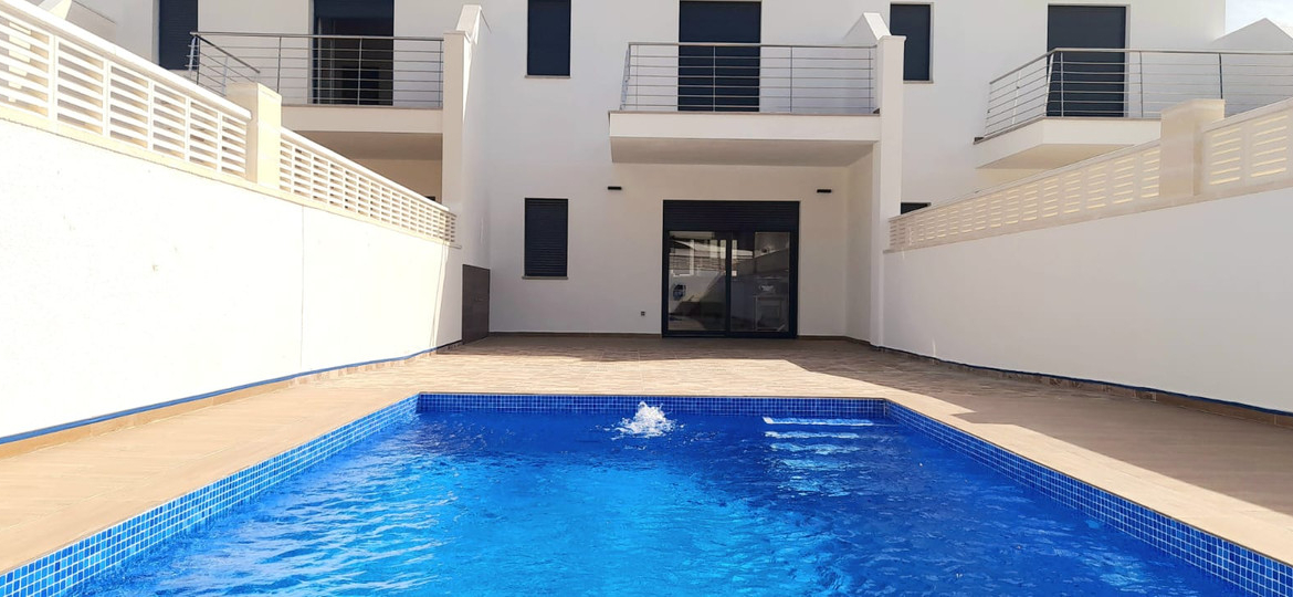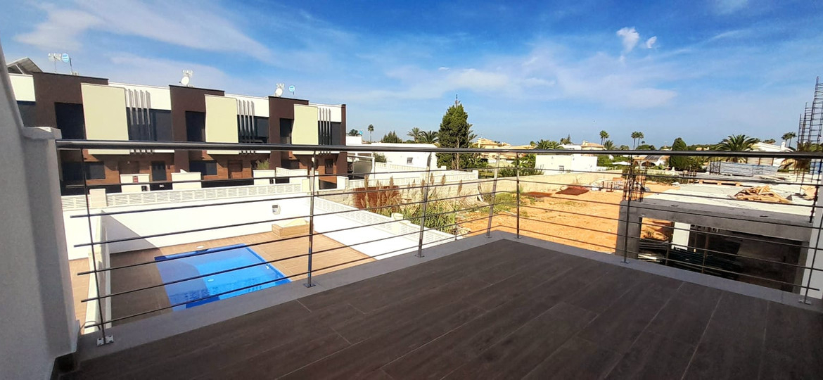 Magnificent modern independent townhouses without community, each has its parking space and its rear garden with private pool. The exterior finishes will provide you with low maintenance of the townhouse, all that is seen with a wood effect is actually porcelain tile.