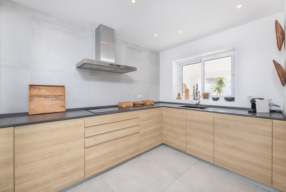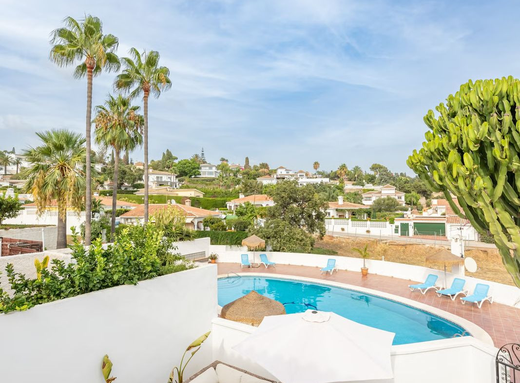 East Marbella, Elviria centre. For sale fantastic renovated and charming townhouse in Pueblo Sueco. This townhouse was refurbished to high quality standards in 2018 and beautifully decorated throughout. The property has a modern feel of top quality and is built over 2 floors. When entering the plot you will find an inviting west patio partially covered. It is furnished with chillout daybeds and there is lots of space for al fresco dining. There are mature types of spectacular cactus and easy maintaining planters. Entering the house you will find a handy guest toilet on the right and the fully equipped kitchen with all the necessary appliances. Also in the kitchen a cosy window to the front patio. The living room has large folding doors to the terrace, good space for two 3 seater-sofas and a nice round dining table next to the fire place. From the living room you access a lovely and spacious covered morning terrace with a 6 seater table, perfect to enjoy your breakfast! The stairs take you to the lower floor where we find a good sized bedroom with another auxiliary bedroom which could be used as dressing room. Another bedroom with a lot of extra space with a desk and dressing area. There are two bathrooms with generous showers, (one ensuite) and a washing/ storage room. These two bedrooms lead you to the patio on the lower floor from which you can access directly to the private pool club. At the patio you will find a beautiful deck where you can relax on the sunbeds and refresh using the solar shower. You can optionally be a member of the club for a yearly fee. There is Daikin hot and cold air conditioning system, underfloor heating in the bathrooms and high speed fibre optic. The neighbours are a combination of local and international nationalities. There is only a 10 minute walk to the best beach in Marbella, a 10 minute drive to Marbella city and less than 45 minutes to Malaga airport. There are as well several 18 hole golf courses like Santa Maria Golf, Santa Clara, Rio Real and Marbella Golf. Marbella has become a brand in Europe and all over the world with 320 days of full sun a year and total of 2900 hours of sun. Elviria represents the very essence of quality of life on the Costa del Sol. It is located in a unique natural setting and has a fantastic range of facilities nearby, including three 4-and-5 star hotels: Don Carlos, Marriott and Estrella de Mar, renowned golf courses such as Santa María and Green Hills, a Michelin-starred restaurant, Nikki Beach Club and one of the best beaches on the coast, all flanked by outstanding bars and restaurants, supermarkets and a local street market every Friday and an organic market every other Saturday. In addition, there is a Town Hall, doctor's office, post office, a wide range of schools, including private schools…all within walking distance. This is a unique opportunity and the ideal location for both a permanent residence or dream holiday home.
