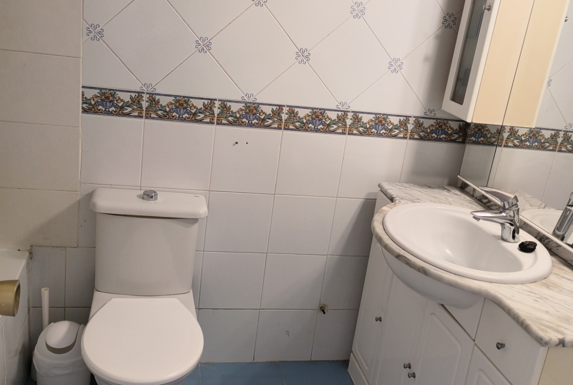 The home is spread over two floors and features 2 bedrooms, 1 full bathroom, and a spacious terrace with a built-in BBQ, ideal for outdoor dining and entertaining. The community offers beautiful landscaped gardens, a swimming pool, and a peaceful atmosphere, just steps away from local schools and with easy access to the main road.