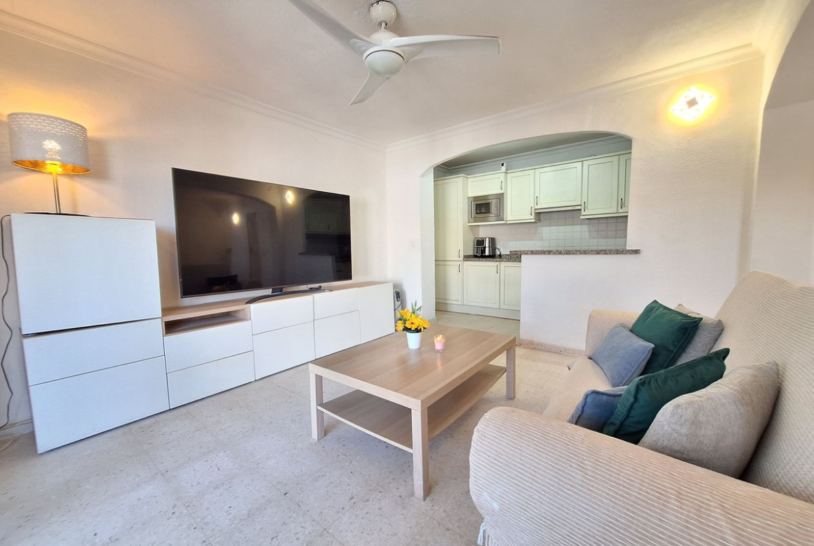 The property is gated and secure with private entrance, opening onto a delightful terrace & garden area with a mature orange tree. Within the garden area you have a BBQ and dining area (with external fridge) with plenty of external storage cupboards. A great dining seating area for 6 people.