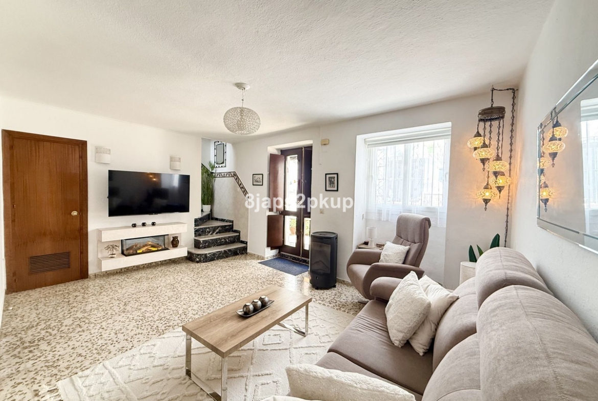 The property is filled with natural light throughout and features a spacious lounge alongside a large dining room, perfect for entertaining or relaxed living. Two internal covered patios provide peaceful, private outdoor spaces, enhancing the home’s traditional Andalusian charm.