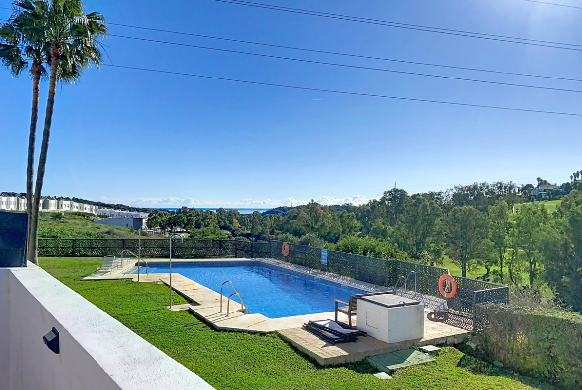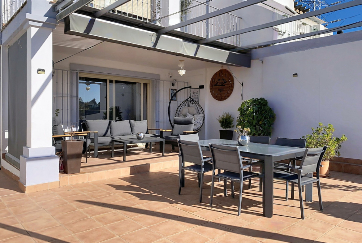 Elegance meets functionality in this stunning frontline golf townhouse, located in the prestigious Estepona Golf community. Featuring 2 very spacious bedrooms, 2 full bathrooms, 2 guest toilets, and panoramic views of the sea, golf course, and mountains, this property offers an exclusive and sophisticated setting for discerning buyers.