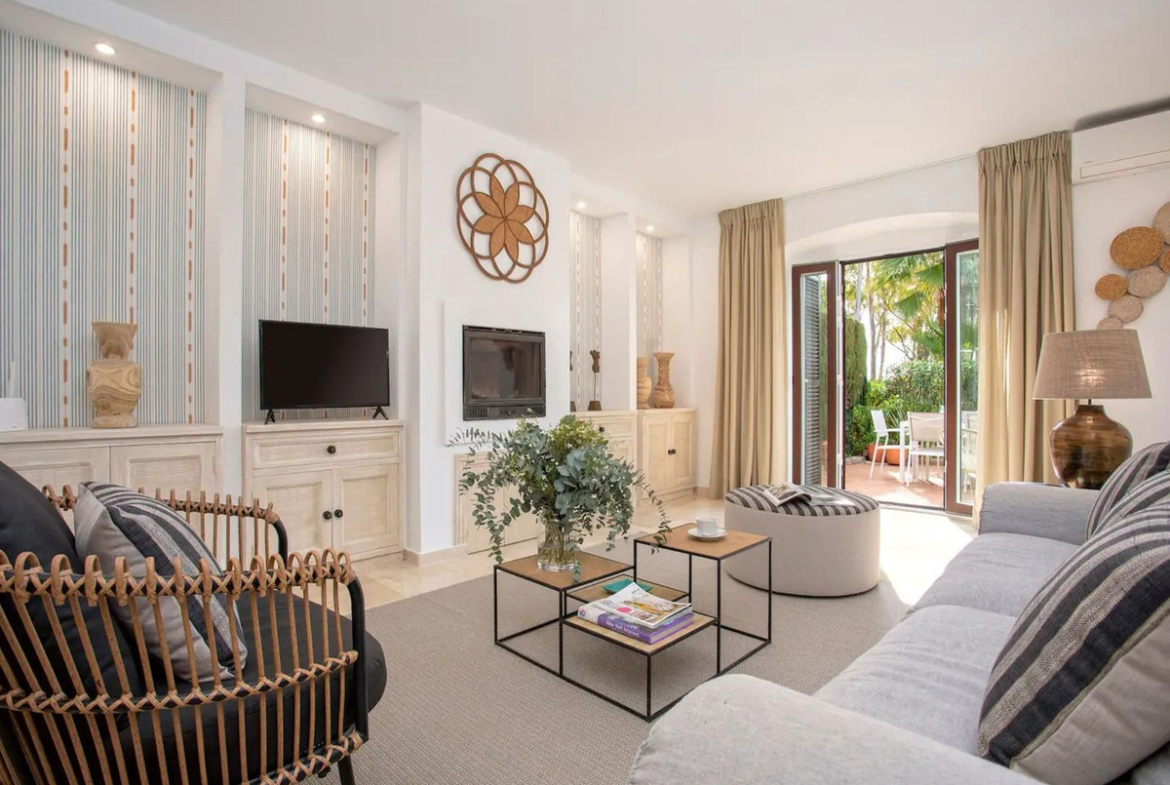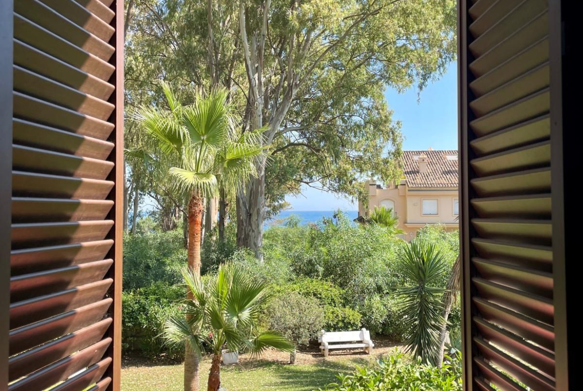 Just steps from the sea, this beautifully renovated townhouse is located in the highly sought-after Laguna Beach urbanization in Estepona.