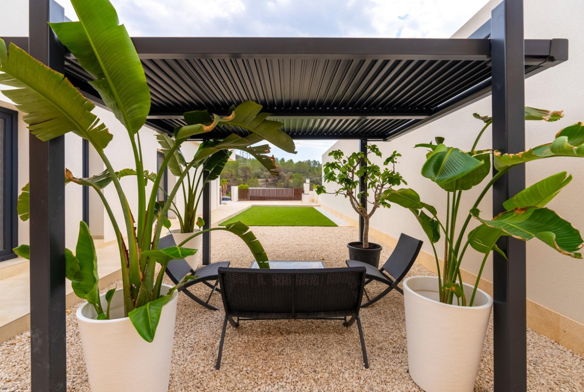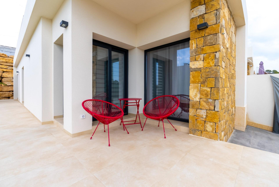 Discover this stunning villa located in the picturesque area of La Tapia, Finestrat. Spanning across 84 m² and set on a generous plot of 287 m², this property boasts two spacious double bedrooms and two modern bathrooms. As a newly built residence, it features a fully equipped kitchen adorned with elegant aluminum interior carpentry and is oriented to the south for optimal sunlight exposure.The home offers numerous amenities including central air conditioning, fitted wardrobes, an en-suite bathroom for added privacy, and luxurious finishes such as porcelain tile flooring throughout. The exterior showcases high-quality aluminum carpentry while extras like water supply ensure convenience at every turn.Step outside to your private garden that includes not only lush greenery but also a barbecue area perfect for summer gatherings under the sun or starry nights overlooking stunning sea views from your terrace. Security is paramount; enjoy peace of mind with features such as armored doors and video intercom systems.This vibrant urbanization provides easy access to public transport including buses and trams along scenic routes leading you through parks filled with trees towards nearby shopping centers (supermarkets), medical facilities & schools ensuring all necessities are within reach! With golf courses close by alongside breathtaking mountain landscapes – whether you're seeking relaxation or adventure – everything lies just beyond your doorstep!With ample parking included plus children's play areas sprinkled around community spaces inviting family fun time—this exquisite haven promises both comfort & excitement year-round!
