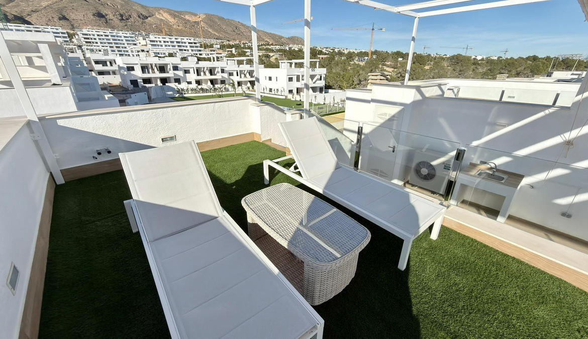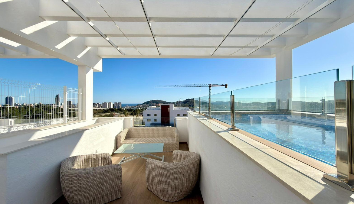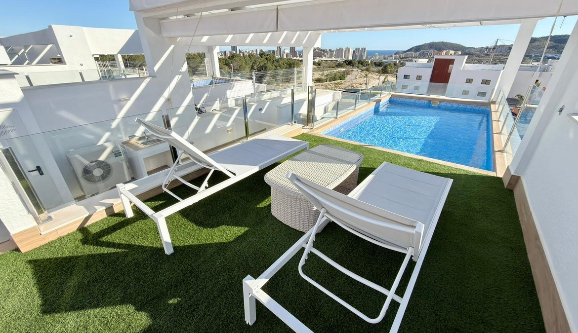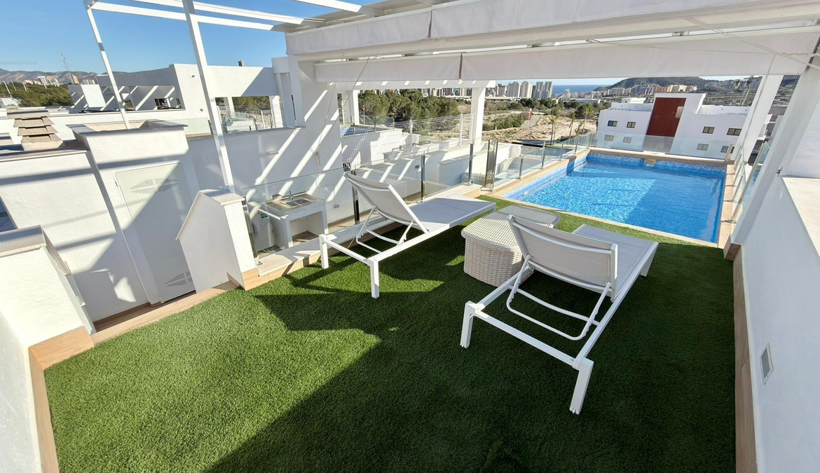 For sale Bungalow. Location Finestrat (ALICANTE). Total area 122.00 m2. Number of rooms – 2. Number of bedrooms 2. Number of bathrooms 2. Year of construction 2024. Distance to the sea 3.00 km.