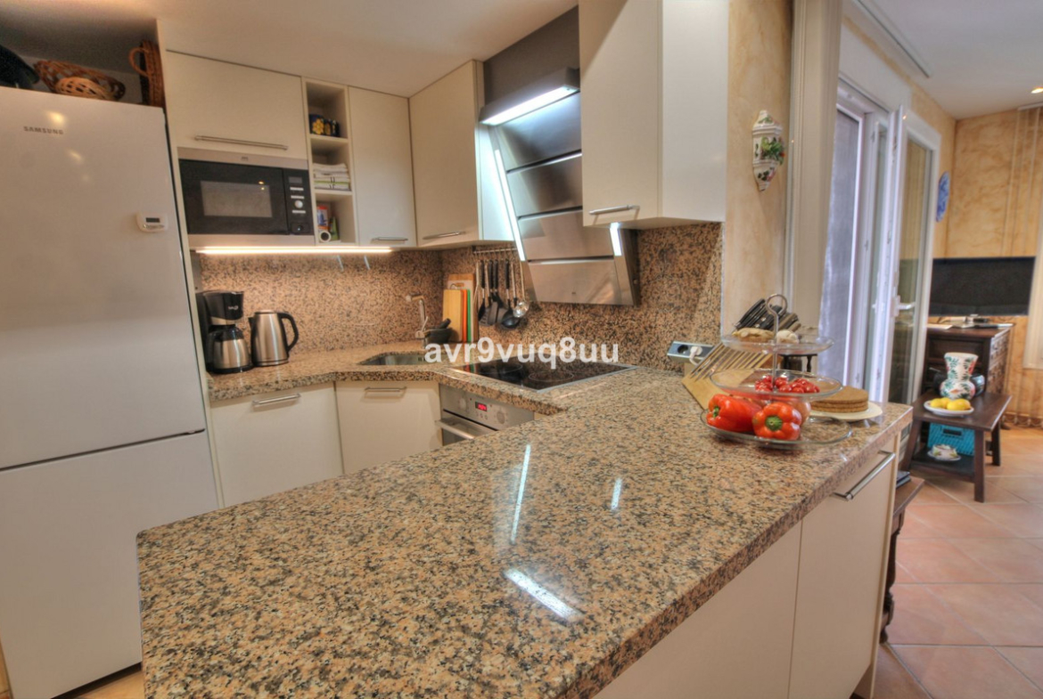 This cosy house is situated just a stone's throw from the beach and a short walk to the centre of La Cala de Mijas. The property benefits from a large area of private garden plus a choice of other terraces to choose from whether you're chasing the sun or the shade. The main floor of the house has a lovely lounge diner with modern open plan kitchen and access onto a private terrace with glass curtains allowing use all year round. You also have 2 bedrooms with built-in wardrobes, a renovated family shower room plus an additional guest cloakroom, hot and cold air conditioning and a private garage. With use of a stunning communal pool and gardens this is a really great property, the likes of which don't come around very often. The house also has a large basement area which is crying out to be developed into further living space