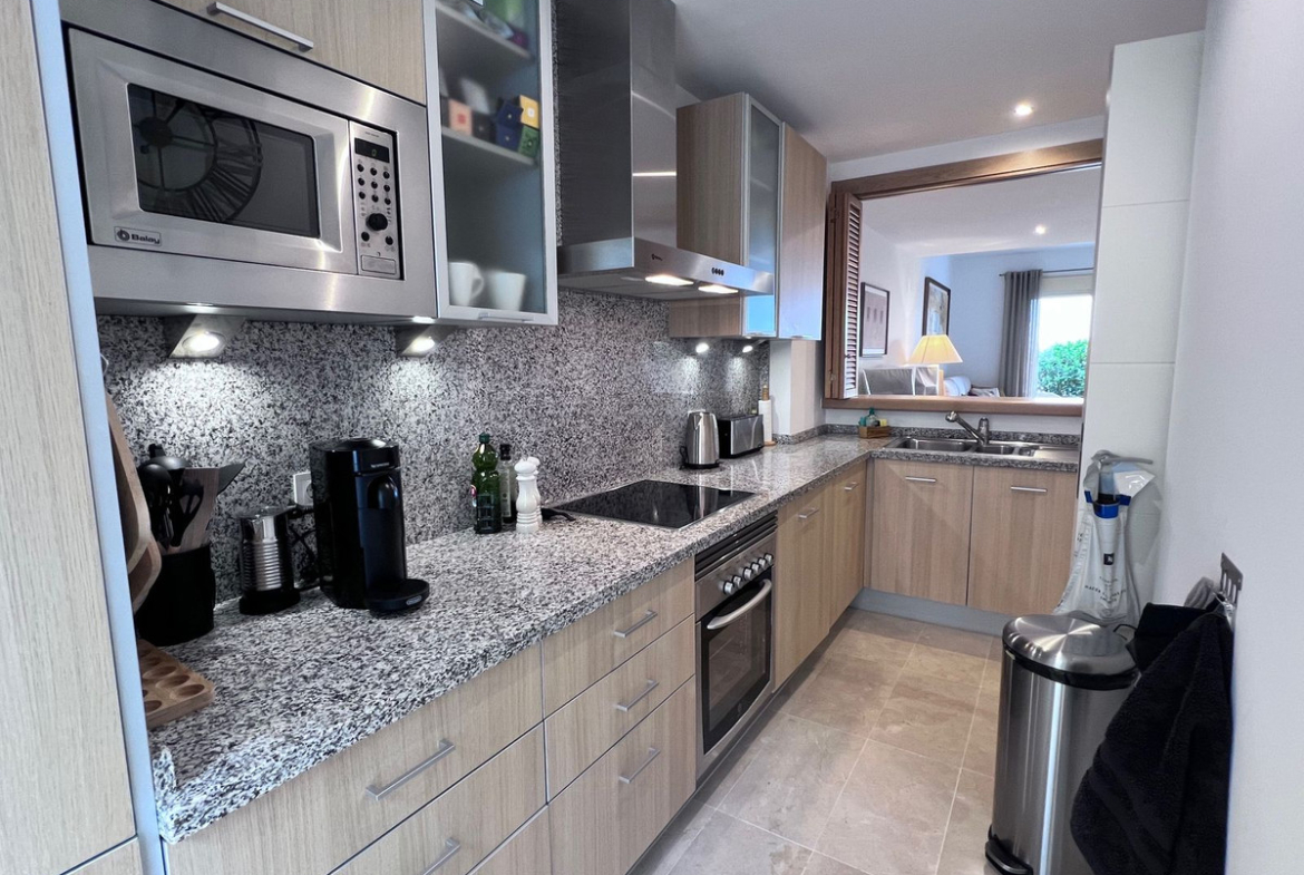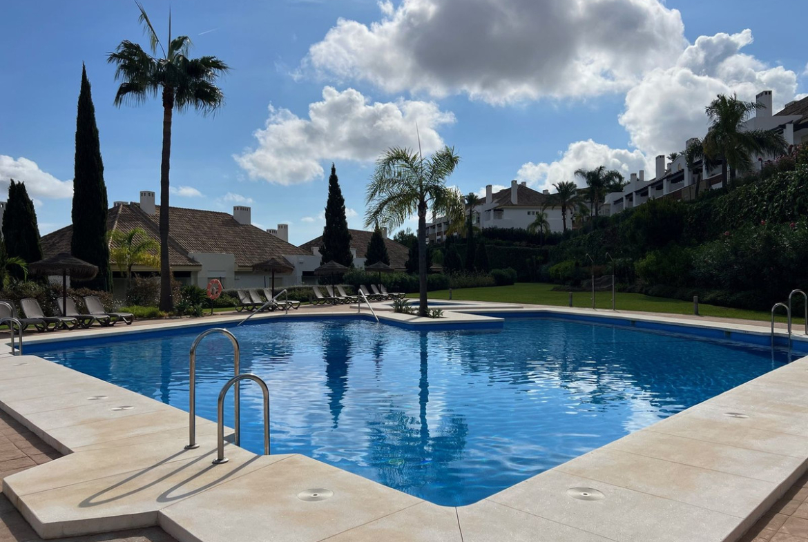 We are delighted to be able to offer for sale this immaculate 2-bedroom 2.5-bathroom townhouse located in the ever popular “Monte Alto” La Cala Golf. With its immaculate mature gardens, 2 communual swimming pools & tropical walkways. This townhouse offers 2 large double bedrooms, both with ensuite bathrooms & terraces, the master bedroom has fabulous mountain views & sea in the distance. Ample fitted wardrobes to both bedrooms with additional wardrobe storage on the landing. On the ground floor we have a fully fitted kitchen including an integrated fridge freezer, washing machine & a dishwasher, guest WC, good size dining area leading to the lounge area featuring a functioning fan assisted log burner for winter use, this then leads out on the terrace & garden area. The house offers direct internal access down to a private garage large enough to take 2 standard sized cars plus additional storage. The garage has its own private electric vented door. Further features include cream polished marble floors throughout, recently renewed ducted air conditioning system, hot & cold, Electric window shutters throughout, Double glazing, fibre optic internet. This house would make a perfect holiday or permanent home being just a short drive to La Cala De Mijas. La Cala Resort offers 3 championship golf courses, Hotel & Spa, Padel courts & various dining establishments. To be sold un-furnished.