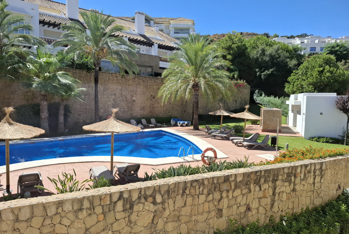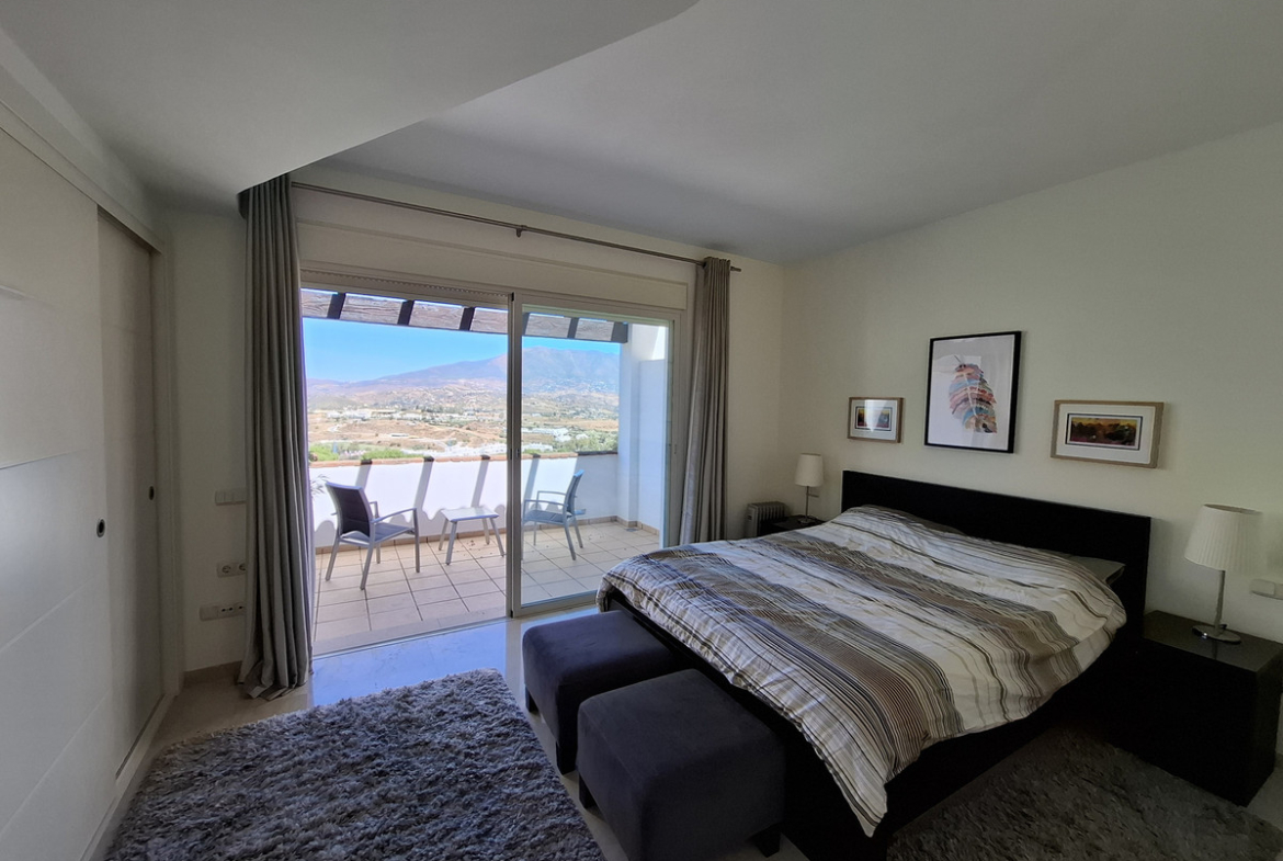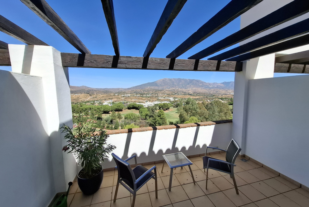 This elegant 2-bedroom, 2-bathroom townhouse offers a perfect blend of comfort, quality, and future potential. Located within a secure gated community with a communal pool, the property enjoys spectacular views of the golf course, mountains, and the sea, creating a truly privileged setting.