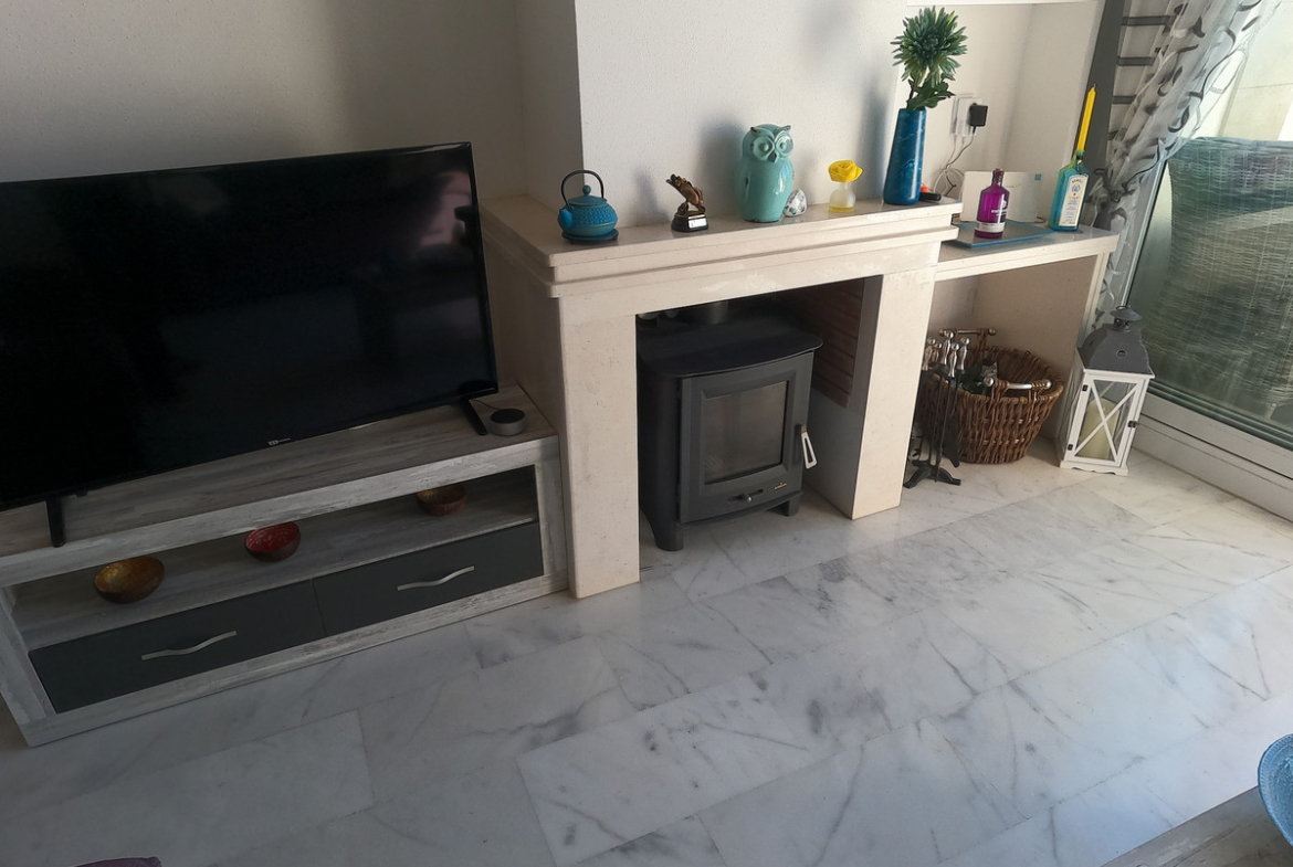 Extra’s include: Wood burner heater in lounge, Air conditioning in all rooms, electric lounge shutter, new sliding patio doors, fully tiled terrace and garden, private pool, new modern en-suite shower room, storage space under the property
