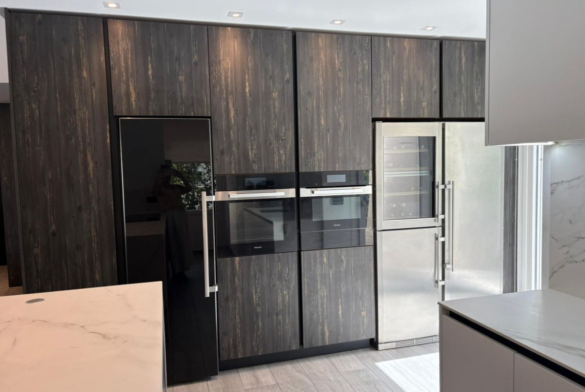 The modern kitchen is fully equipped with high-end appliances from brands like Miele and Liebherr — a clear mark of quality.