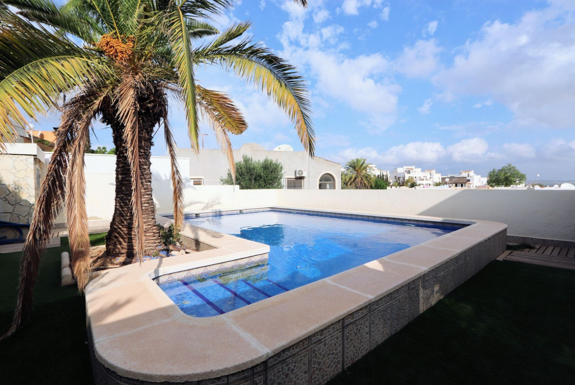 This Newly Listed Detached Villa is located in Los Balcones. The property consists of 2 bedrooms with wardrobes, 1 bathroom, living/dining area and a fully fitted kitchen. The property benefits from private terraced areas, Pergola with outside dining area and BBQ, roof solarium with panaramic views and a private swimming pool.