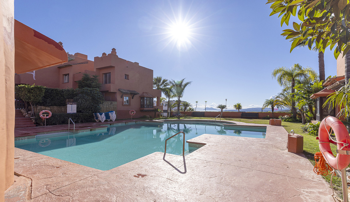 Located within a gated community in la Chullera, Manilva, this well laid out 2 bedroom townhouse offers generous living space, excellent flow, and outstanding potential to adapt the home to your needs. Parking is conveniently located on the front porch, giving direct access into the property.