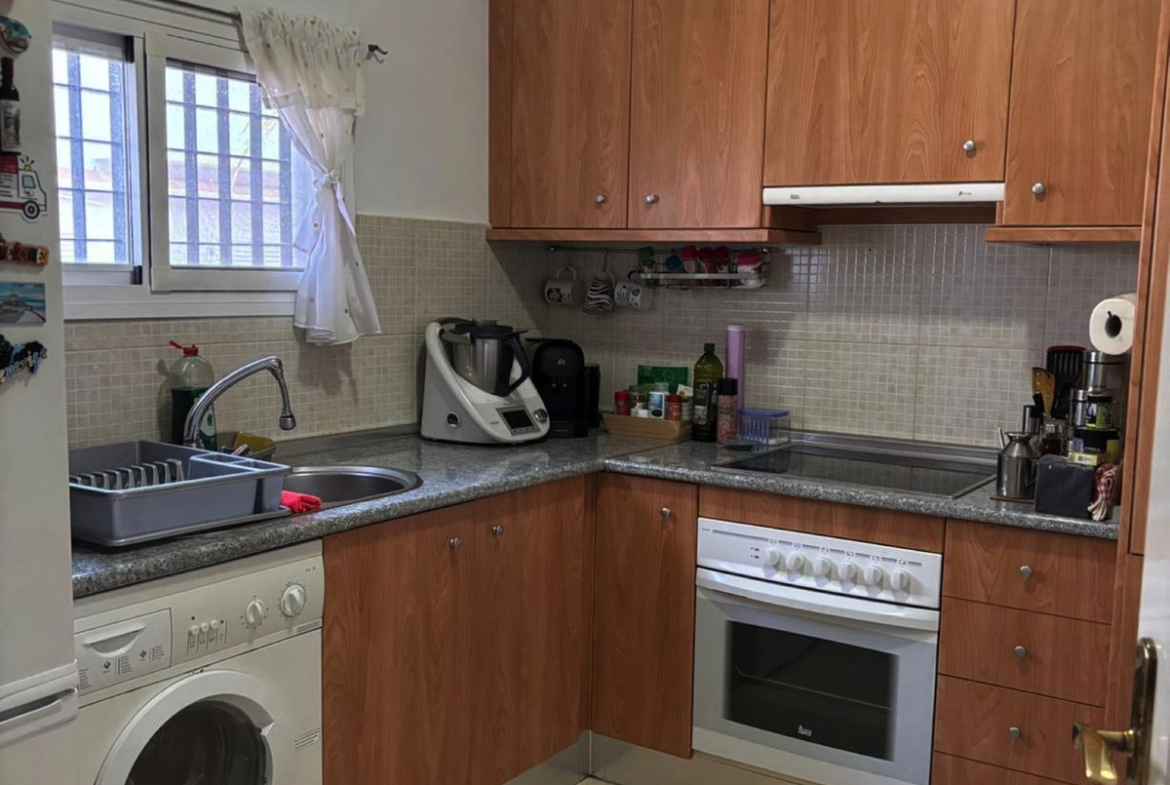 Thoughtfully arranged over three levels with flexible dual entry from the first or second floor, this 107 m² (89 m² usable) south-facing retreat is in superb second-hand condition, featuring marble flooring throughout and spectacular vistas. The first floor boasts two spacious bedrooms with fitted wardrobes, air conditioning, and en-suite bathrooms, both opening to a shared terrace that leads directly to the urbanisation's inviting swimming pools—ideal for leisurely swims. A wide hallway reveals a versatile third auxiliary room, perfect as a guest suite or home office. This level also includes a dedicated storage space connecting to a private garage with built-in storage solutions, plus an under-stairs cupboard for additional organisation. Ascend to the second floor, where an independent, fully equipped kitchen with ample storage awaits, alongside a bright living-dining room with air conditioning and a cosy fireplace, seamlessly flowing to a large terrace with awe-inspiring views—enhanced by awnings for year-round use and currently set up as a barbecue area. A spiral staircase ascends to a private rooftop solarium, offering endless potential as a chill-out zone. A guest cloakroom ensures visitors have convenience without accessing private areas.