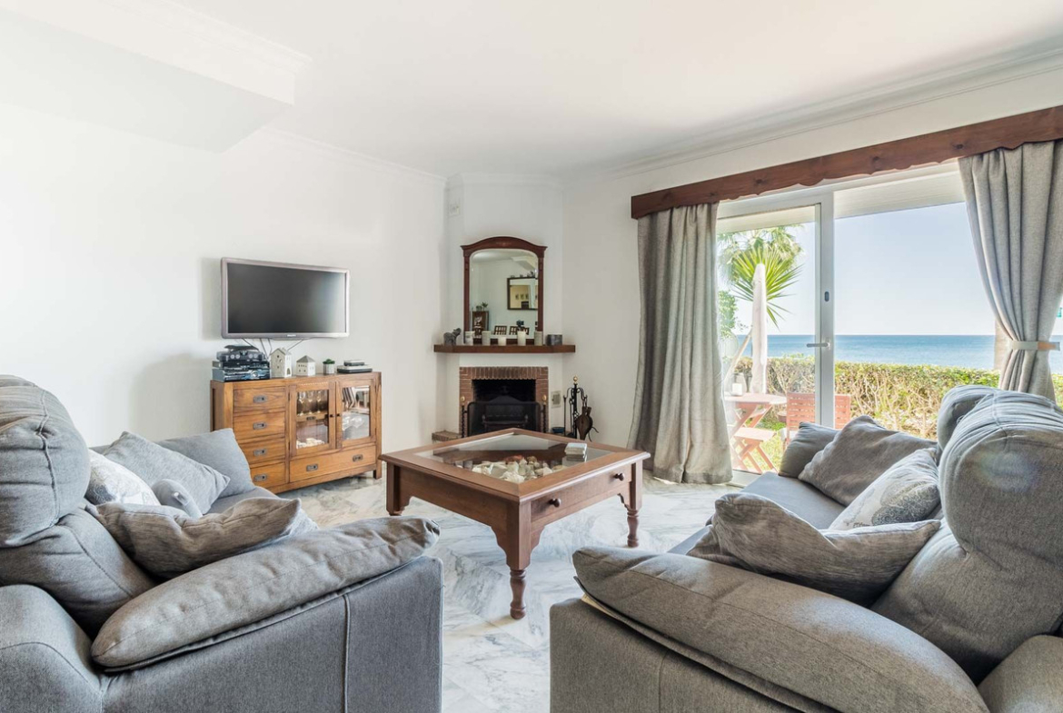 The community offers excellent facilities: a seafront swimming pool, a tennis court, and an additional sports area. The property is located right next to the Coastal Path, perfect for enjoying long walks by the sea, reaching as far as Estepona.