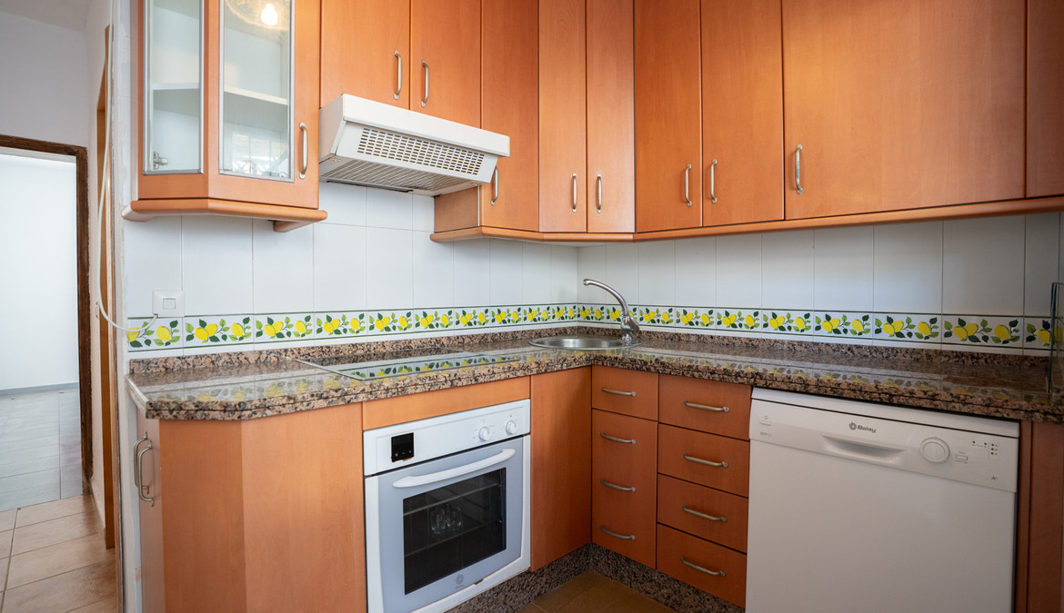 The property features two well-proportioned bedrooms and a modern bathroom, offering comfortable accommodation within its 48m² built area. The living room provides a welcoming space for relaxation, while the fitted wardrobes ensure ample storage. The kitchen comes fully equipped, catering to all culinary needs and making everyday living both convenient and enjoyable.