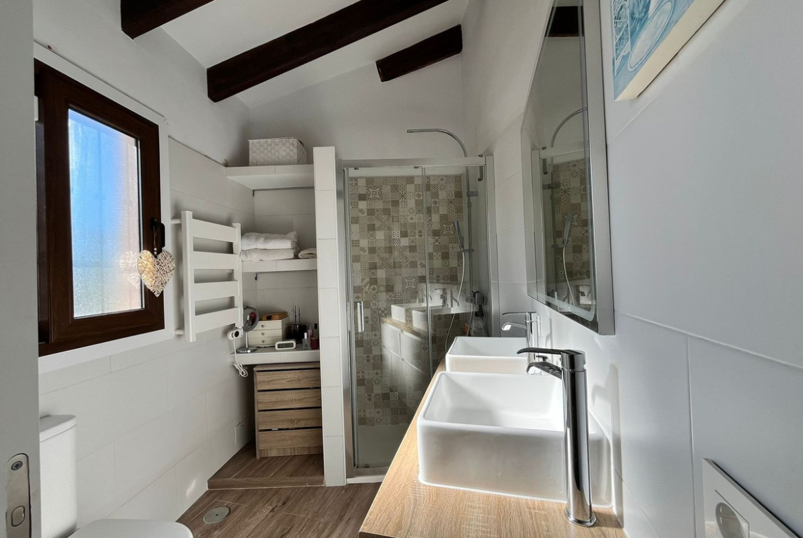 The house features a lovely front terrace with a spacious porch, perfect for entertaining guests and enjoying barbecues. At the rear, a second terrace provides an excellent space for laundry or additional storage. The property has been fully renovated: both the kitchen and bathrooms are brand new. It is sold fully furnished and with a fully equipped kitchen, making it ready to move into or enjoy immediately as a vacation residence.