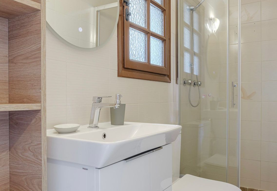 The house is thoughtfully laid out over two levels. On the ground floor, you’ll find a welcoming entrance hall, a bathroom, a fully equipped kitchen, and a bright living-dining area that opens onto a cozy porch—perfect for relaxing or dining outdoors. Upstairs, there are two comfortable bedrooms and an additional bathroom, making it ideal for a couple, small family, or as a holiday getaway.