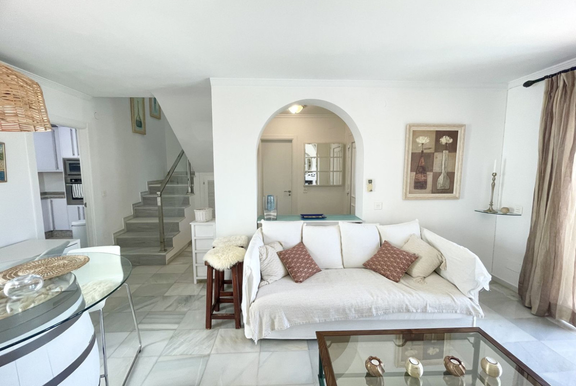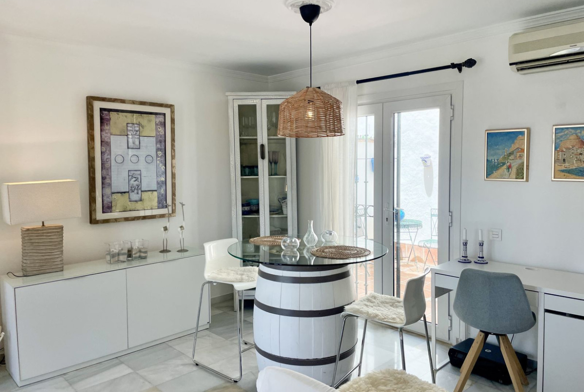 Welcome to this tastefully decorated townhouse in the highly sought-after and picturesque community of Puebla Aida—an area reminiscent of an Andalusian village with its blooming alleyways and small squares lined with lemon trees. Here, you will enjoy a peaceful and harmonious setting with nature at your doorstep and the renowned Mijas Golf courses as your closest neighbor.