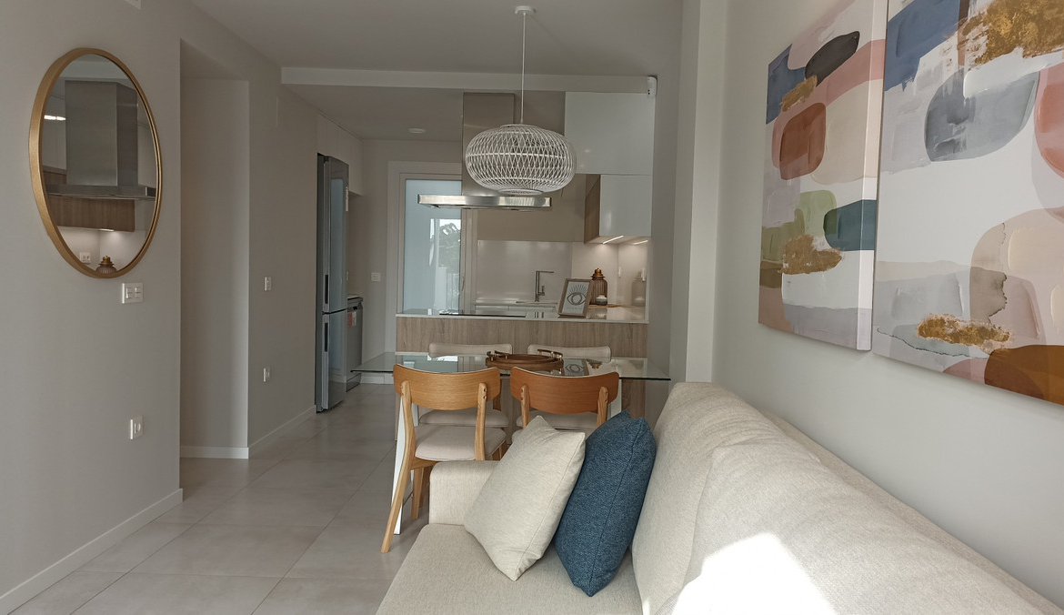 Located in the modern residential complex in Mil Palmeras, just 600 meters from the Mediterranean Sea, these bungalows are part of a private gated community with parking, landscaped gardens, and communal swimming pools for adults and children.