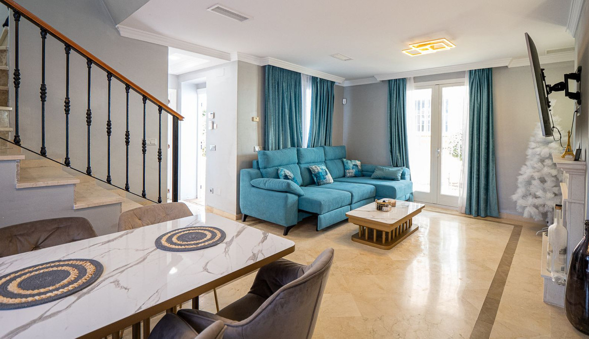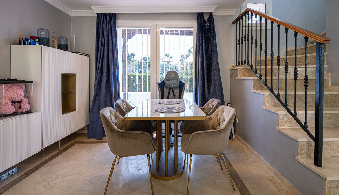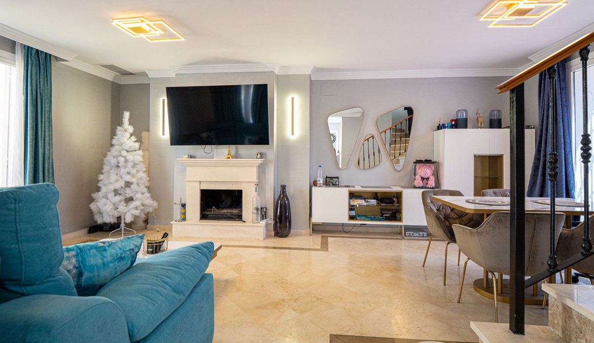 Introducing is a stunning, renovated townhouse located next to the tranquil Aloha Lake, in the prestigious area of Los Naranjos, Nueva Andalucía, just a 10-minute drive from the world-famous Puerto Banús.