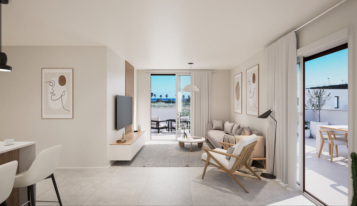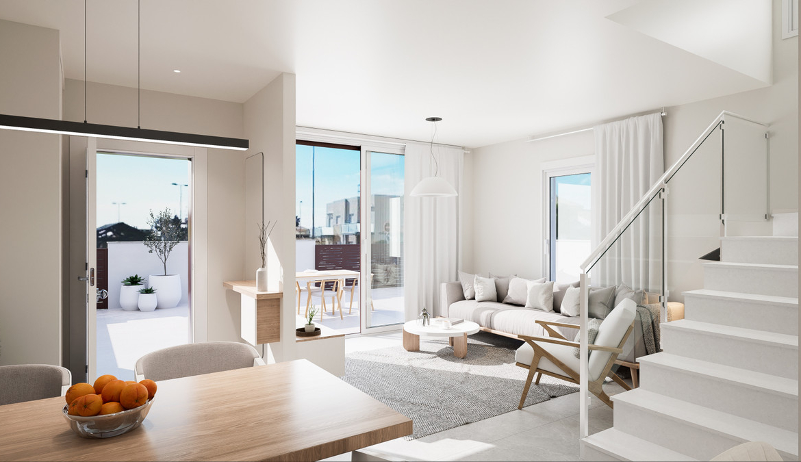 The new development is located on the second line of the Higuericas Beach, in Torre de la Horadada. It consists of Duplexes, Bungalows and Apartments of modern style with an exclusive touch. All homes have parking, large terraces, green areas and communal pool.
