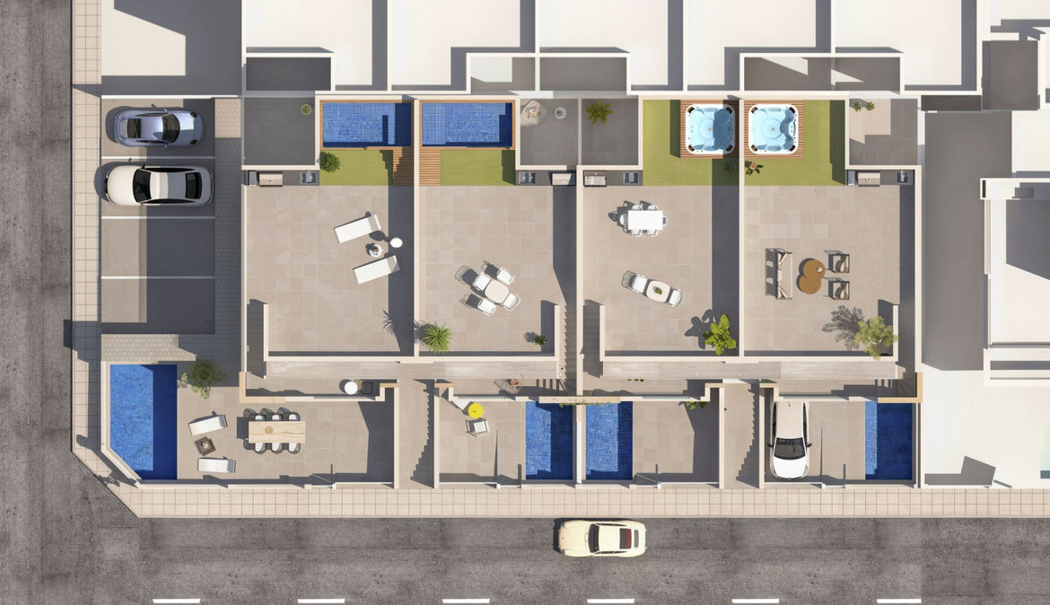 We invite you to discover a new development located in San Pedro del Pinatar (Murcia), in a privileged area surrounded by all amenities, sports facilities, several golf courses, and just 5 minutes from the Mediterranean Sea and the beaches of the Mar Menor.